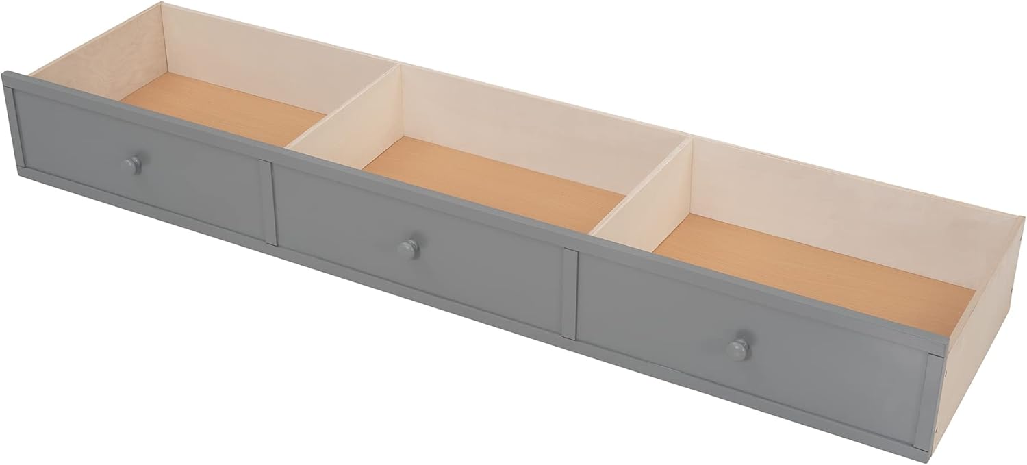 If you need extra sleeping space, this Stairway Full-Over-Full Bunk Bed with Drawer is perfect for your home. Four open shelves located beneath the attached staircase provide ample storage for your goods and bedding. High-quality, solid pine legs and a strong, durable frame ensures stability and durability for long-term use, and can be separated into two full-size bed. Slat kit included so box springs are not required. Weight & Dimensions Overall Product Dimension 94.2"L x 58.07"W x 63.1"H Number of Package:3 Overall Product Weight:230LBS Weight Capacity Upper bed: 200LBS Bottom bed: 275LBS Recommended Mattress Thickness Upper bed: 6" Bottom bed: 8" Specifications: Product Type:Bunk Bed Size:Full-Over-Full Material:Plywood+MDF+Pinewood Box Spring Required:No Assembly Required:Yes Country of Origin:Vietnam Package Size Package 1: 60.83 x 26.18 x 6.89", 61.73lbs Package 2: 81.30 x 14.96 x 7.09", 90.39lbs Package 3: 56.89 x 20.67 x 7.68", 79.37lbs