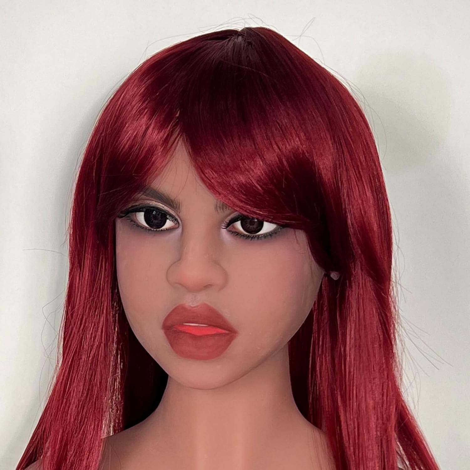 Makeup Life-Size Doll Head with Hair Wigs Snap or M16 Studs Fixed, Brown Color