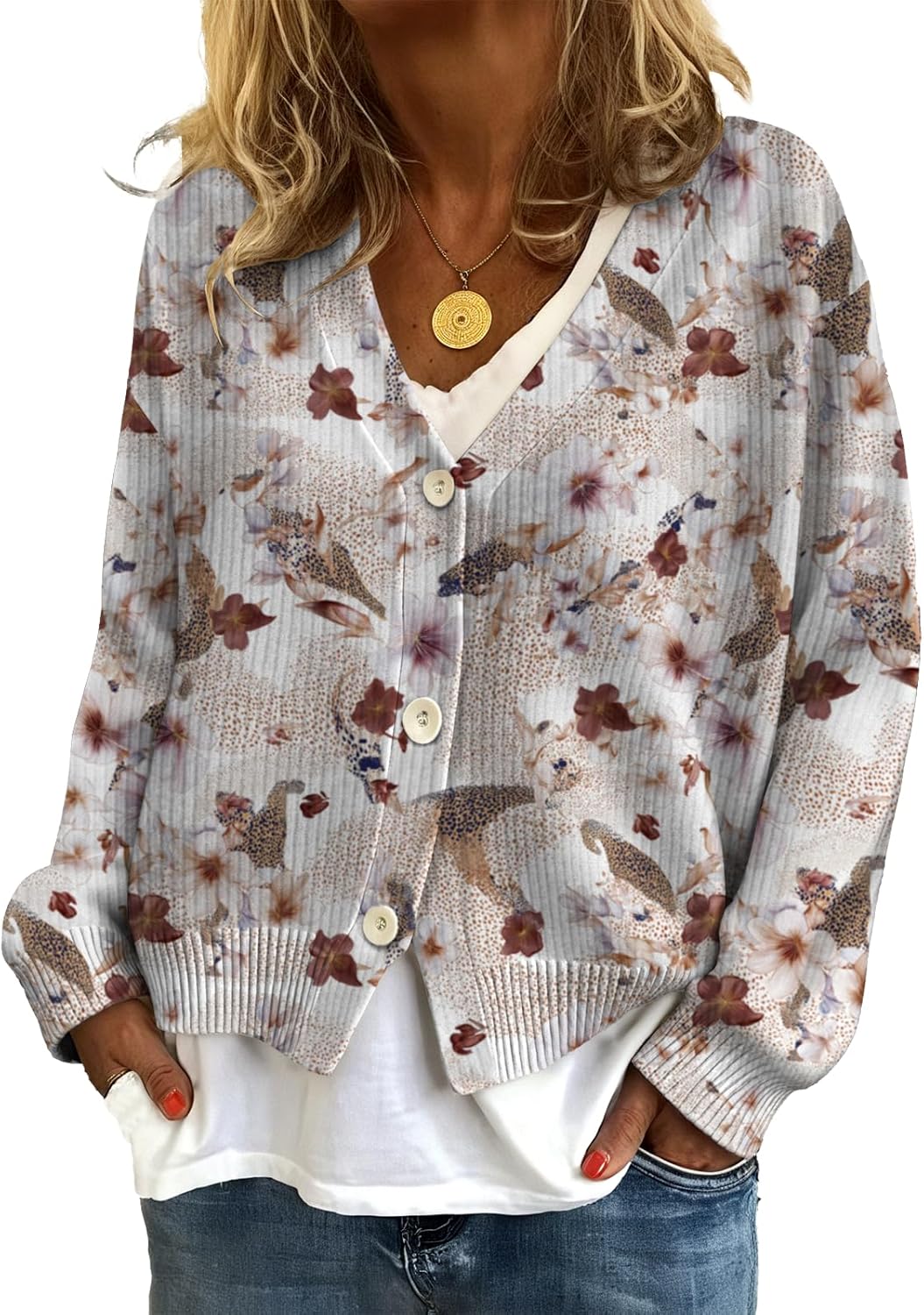 MARSVOVO Fashion Casual Cardigan Sweaters for Women Classic Long Sleeve Comfy Lightweight V Neck Cardigan Basic Relaxed Fit Button Down Spring Fall Sweater Tops