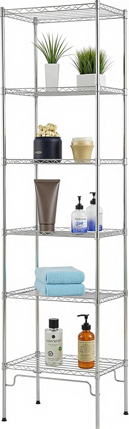 Maximize Your Storage Potential with the [Brand Name] 6-Tier Heavy Duty Wire Shelving Unit.Designed for those who need reliable, industrial-strength storage, this 6-tier metal rack combines a heavy-duty steel build with a versatile, adjustable design. Whether you are organizing a cluttered garage, a busy kitchen, or a compact pantry, this unit provides the structural integrity required to keep your space tidy and efficient.Heavy-Duty Performance With a total weight capacity of 900 lbs, this shelving unit is far from lightweight. The thickened steel wires and sturdy poles are engineered to prevent sagging or wobbling, providing a secure platform for everything from heavy-duty power tools to stackable storage bins.Tailored to Your Space The 24-inch width and 14-inch depth strike the perfect balance between storage volume and floor space efficiency. Because each shelf is height-adjustable, you can create a custom storage layout that fits your specific needs, ensuring no vertical space goes to waste.Built for Diverse Environments The sleek, rust-resistant black finish ensures this unit looks professional in an office and stays durable in a basement. Its stationary design with adjustable leveling feet provides a permanent, rock-solid storage solution that won't shift or slide on uneven surfaces.Product Specifications: - Overall Dimensions: 24" W x 14" D x 61" H - Total Load Capacity: 900 lbs (150 lbs per shelf) - Material: High-Density Carbon Steel - Finish: Rust-Resistant Coating
