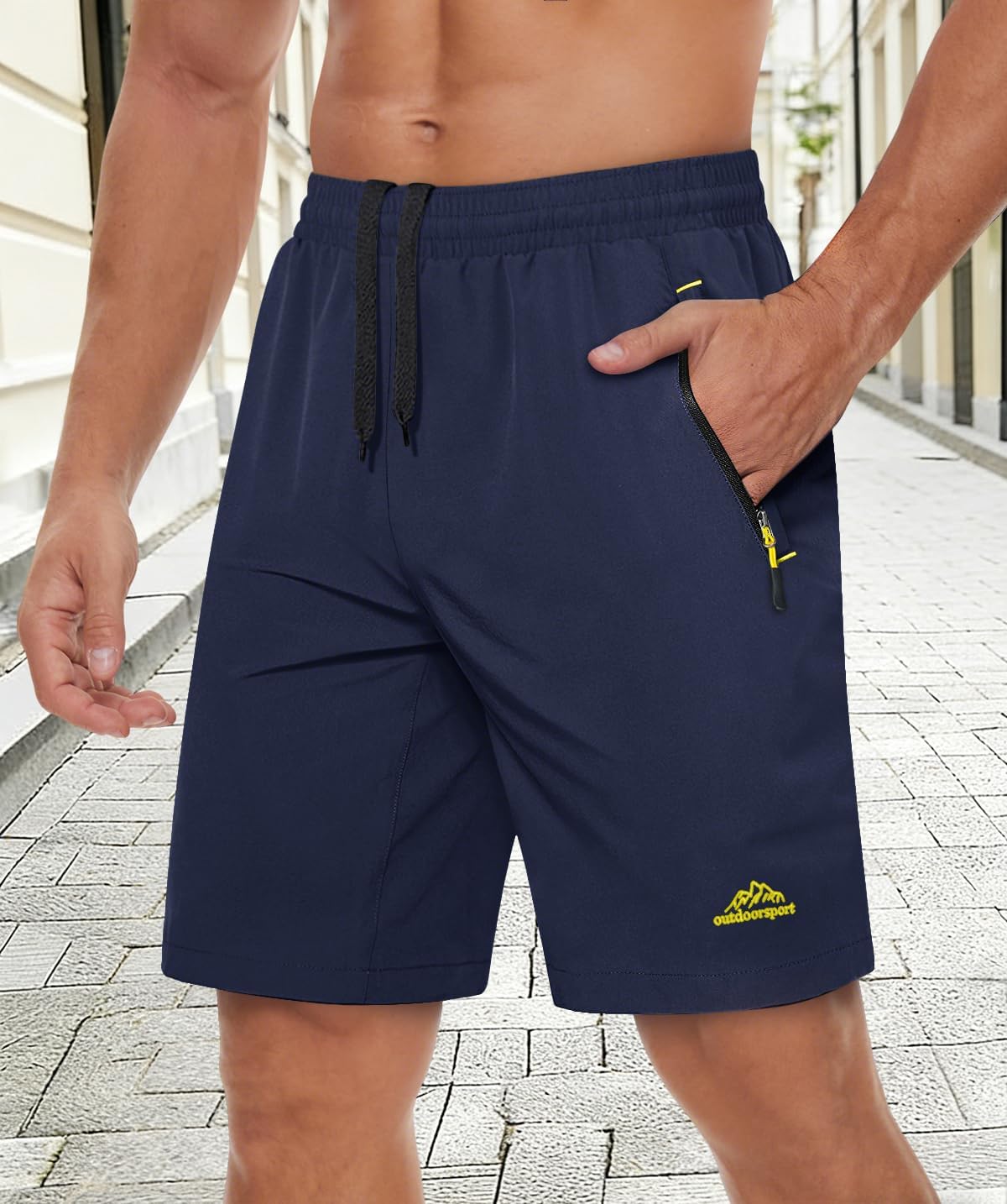 Men's Athletic Running Shorts 9" Quick Dry Lightweight Sport Workout Hiking Gym Shorts with Zipper Pockets