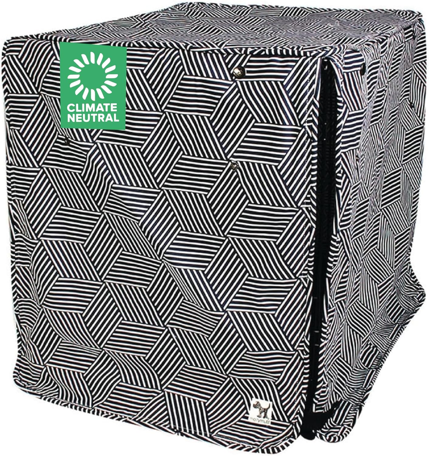A dog crate cover gives your four-legged best friend the privacy they need and desire. Don't Hide Your Dog’s Wire Crate Match it to your sense of style with a Molly Mutt crate cover. Your dog is a beloved part of the family — so give them a cozy place to rest at night, or whenever a nap comes calling! Our crate covers are made from durable 100% cotton canvas that breathes while blocking out light. Mix, Match or Coordinate Choose from hundreds of combinations to make the perfect comfy home for your pup. Pairing a dog bed duvet cover with a crate cover is a great way to bring both style and comfort to your dog’s crate. Up, Down, Up & Down. It’s Up to You. The Molly Mutt crate cover has front and right-side panels that roll up so you can use either door on your crate. No need to move your crate to use this crate cover. A Statement Piece With 20 patterns to choose from you can turn that ugly wire crate into a featured piece in any room. Make it stand out with a bright color, or blend in with a dark geometric design. This cover for dog crates measures 24" x 18’" x 21", and it’s free from any harmful chemicals and fire retardants, making it safe for your entire family.