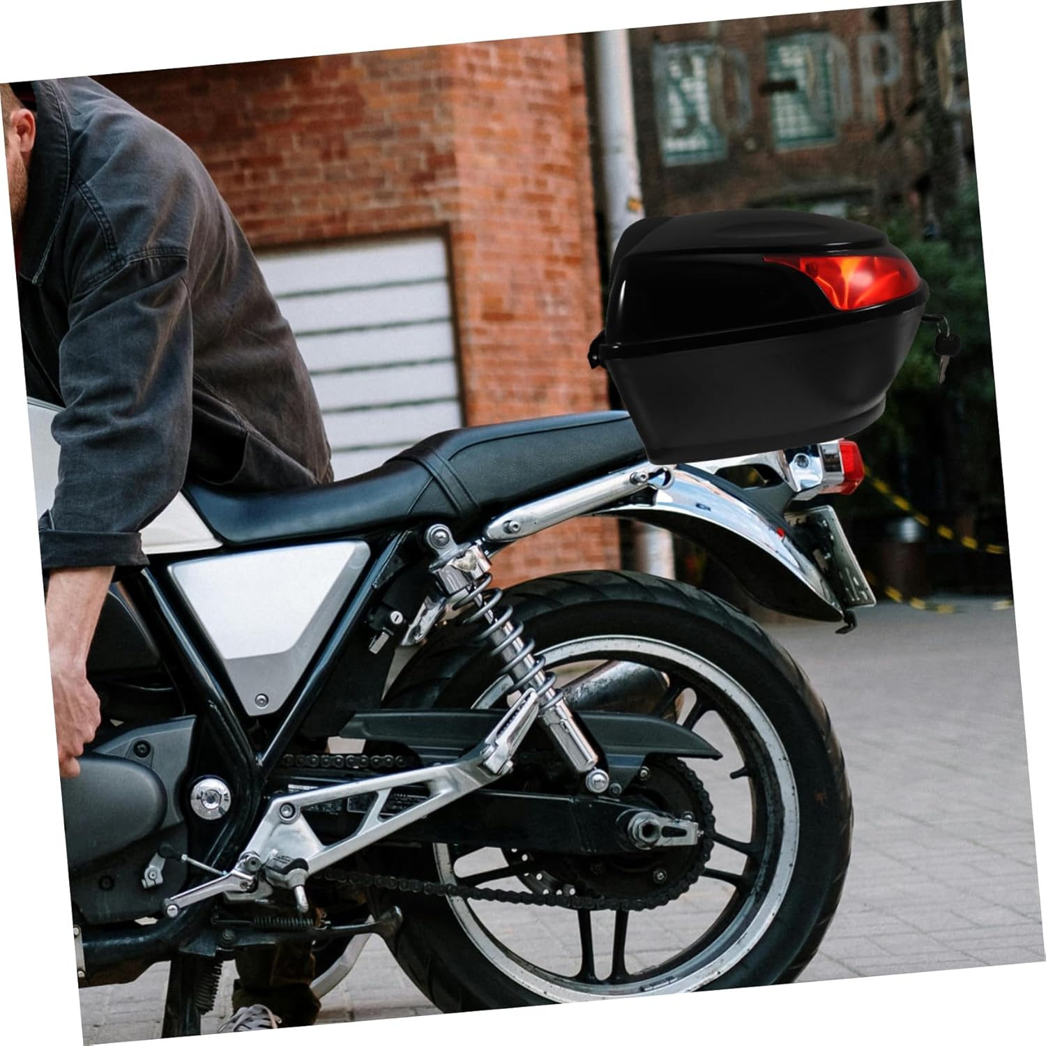 Package List 1 x Motorcycle Trunk Features - Secured lock buckle: Easy to use and good for anti-theft trunk for scooter - Easy to install: It comes with all the mounting kits. Includes a luggage rack to fixed the trunk scooter storage trunk - Material: PP tail trunk luggage case - Size: 30.00X30.00X21.00cm/11.79X11.79X8.25in trunk for motorcycle - Color: Black boxes - Warm Tip: Dear buyer, due to lighting effect, monitor's brightness, manual measurement, etc., there could be some slight differences in the color and size between the photo and the actual item. Sincerely hope that you can understand! Thank you motorcycle rear trunk motorcycle tail trunk scooter rear trunk - Made of strengthened PP material, heat-resistant, strong anti-pressure, sturdy and easy to install motorcycle storage trunkGoods Descriptionmotorcycle storage bag With thickened cushion, comfortable to lean on.motorcycles guard bag Secured lock buckle: Easy to use and good for anti-theft.motorcycle carrier Adopt strengthened PP material, heat-resistant, strong anti-pressure, sturdy and easy to install