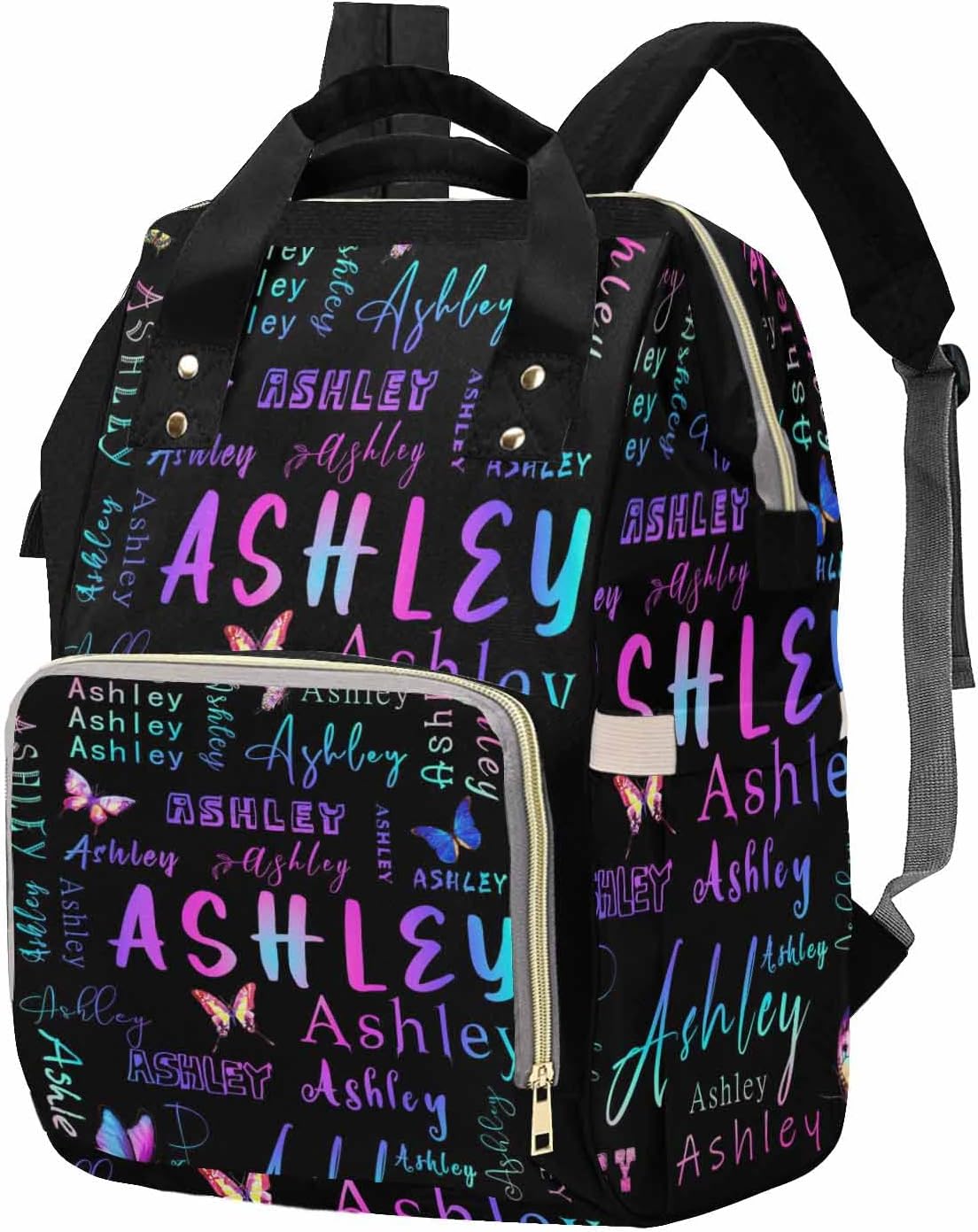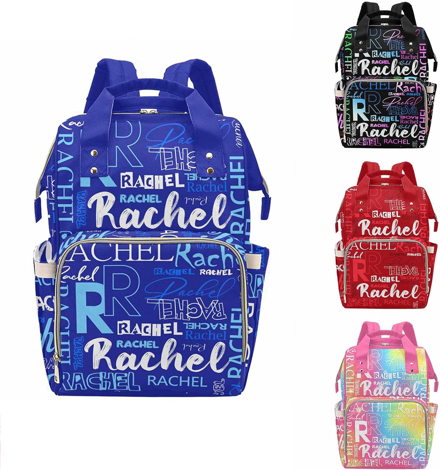 Diaper Bag Backpack Personalized with Name for Girl Boy Mom & Dad, you can personalize the name what you need anytime. Nylon Material: Oxford and nylon fabric, makes the mom dad diaper bag durable. Baby bag with smooth zipper, sturdy inner lining, delicate reinforced stitches.Large Capacity: Custom Name diaper backpack with a main compartment and some different separate pockets inside, which can store different things, daily necessities. Item size: 10.8"(L) x 6.9"(W) x 15.75"(H).Multi-function Design: Front compartment includes 3 insulated pockets and one mesh compartment, the milk bottles can be placed in the insulated pockets. The other big compartment inside designed by absolute 4 pockets and one zipper pocket, so that you could put different things and keep them organized. Diaper bag also with 2 side pockets.Adjustable Straps: Make you more comfortable and stable while you carrying the personalized name diaper bag backpack.Waterproof: The Water resistant outer material of personalized diaper bag to protect your daily goods and the inner lining can be wipeable.