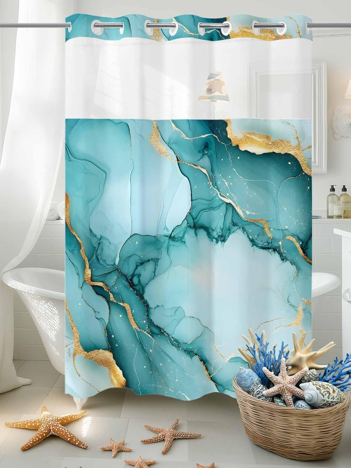 High - Quality Material for Long - Lasting Use Our double - layer shower curtain is made of top - grade waterproof polyester. This material is not only great at preventing water from seeping through but also dries quickly, which is essential for a clean bathroom environment. Convenient Liner with Snap - Button DesignThe inner lining of the quick drying shower curtain uses a snap - button splicing method. This means you can easily take off the liner for cleaning or replacement. No more struggling with glued - on liners or complex removal processes. It's a simple yet effective design that makes your life easier. Unique Split - Ring for Easy Installation Installing the privacy enhancing shower curtain is now as easy as ever. You don't need extra hooks or go through the trouble of removing the shower curtain rod. This also makes it convenient when you need to clean or change the curtain. Mesh Top for a Spa - like Experience The semi - transparent mesh at the top of the curtain is a great addition. It allows light to enter the shower area, creating a bright and inviting space. Easy to Clean - Machine Washable Just put it in the washing machine on a gentle cycle. Follow the instructions of not bleaching and using low - temperature ironing, and your shower curtain will always look new. It's suitable for any bathroom, shower room, or toilet in your home.