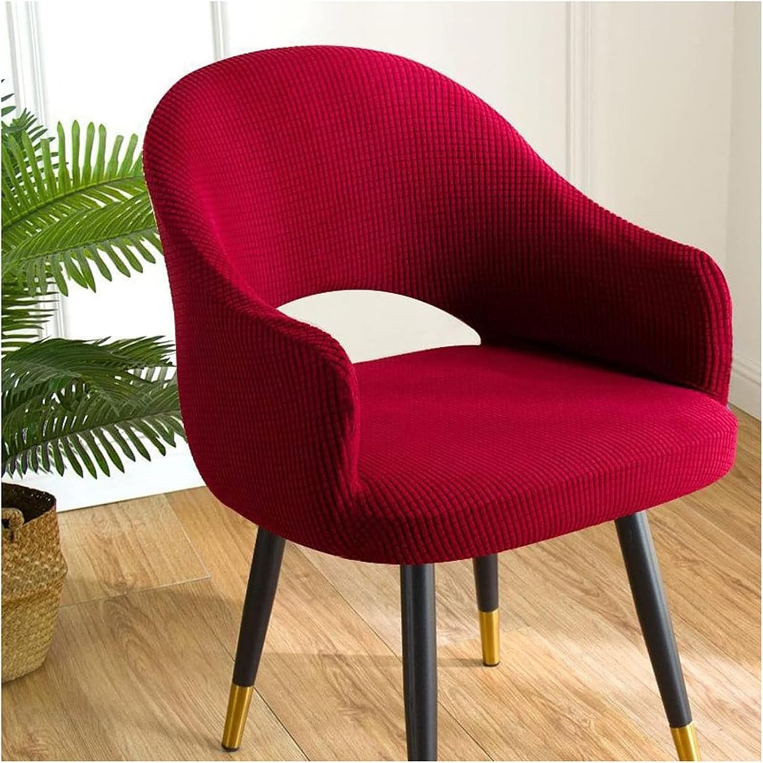 Oval Curved Wingback Chair Cover, Universal Replaceable Hollow Chair Protector Cover, for Home Hotel Coffee Machine WashableBackrest Height: 24-32 cm (9.4-12.6 in) Armrest Height: 12-15 cm (4.7-6 in) Seat Depth: 39-48 cm (15.3-18.9 in) Seat Width: 40-50 cm (15.7-19.6 in) Important: Please measure your chair before placing an order.Washing Instructions: 1. Machine Washable or hand washable 2. Wash in cold water 3. Do not iron 4. Do not dry clean 5. Do not bleach Package Options: Available in packs of 1, 2, 4, or 6 Stretch Washable Chair CoversNote: Ensure to measure your armchair before purchasing. Allow for a measurement error of 1 to 3 cm due to manual measurement. The color of the items may vary slightly from the images shown.