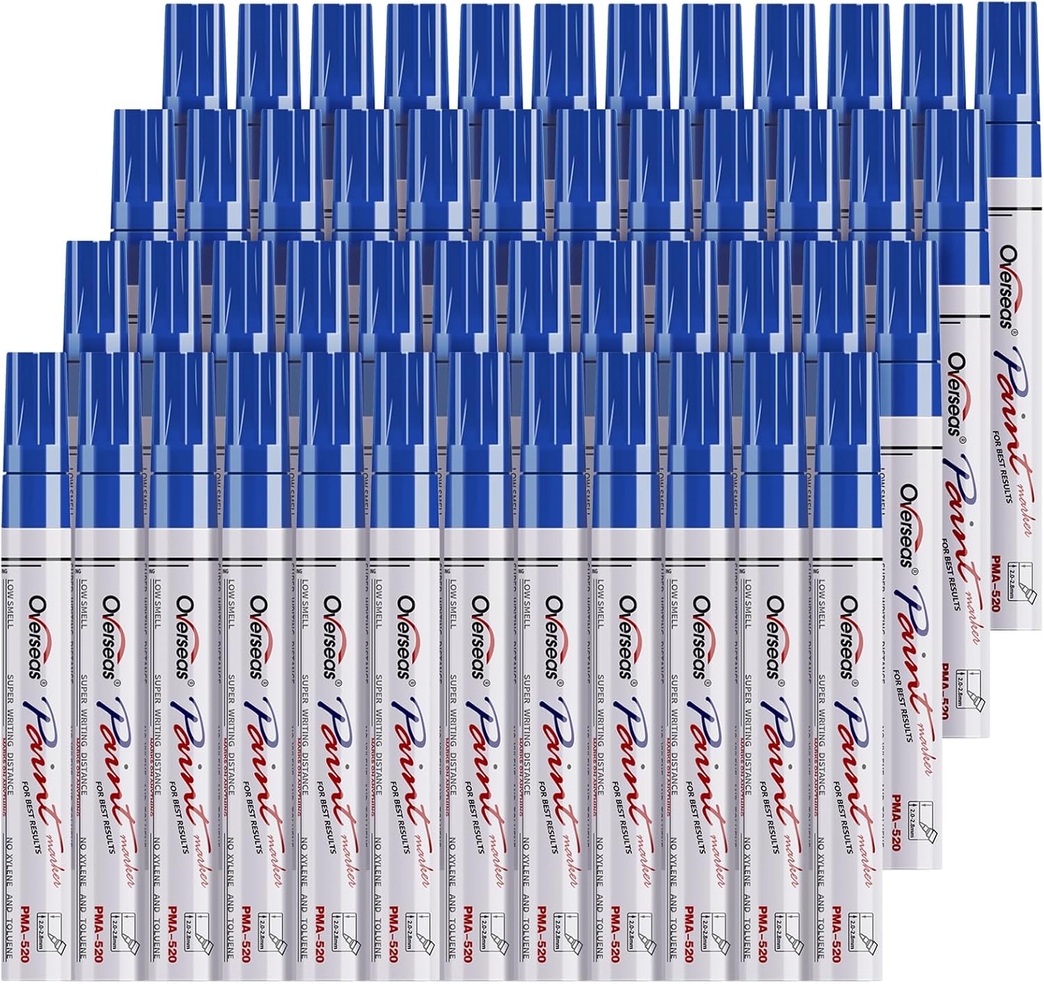 White Permanent Markers, Oil Based Paint Pens, 48 PackWhy choose Overseas paint pens?-Overseas permanent marker pens come with opaque, long-lasting, bright and vivid oil-based ink. Suitable for both home and office.-Durable medium tip allows Overseas markers to work on glass, paper, rock painting, cardboard, rubber, plastic, canvas, leather, metal, brass, wood, stone, tires, etc. Almost all surfaces.How to use the paint pens1)Shake the pen well.2)Hold the pen with the tip up and press it to release air out.3)Press the tip down several times until the ink starts to flow.4)You are now ready to write on any surface!-Use mineral alcohol or turpentine to clean off.Description-No xylene and toluene.-Suitable for multiple surfaces.-Oil based paint, not transparent.-The ink conforms to EN71-3 and ASTM D-4236.-The ink complies with the European union - RoHS directive.-Brand new and individually packed with shrink film.