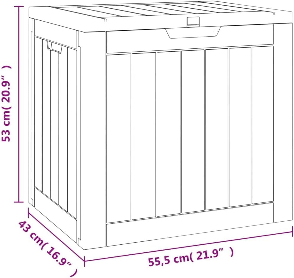 The patio storage box is a perfect solution to keep your outdoor area neat and tidy.Durable material: Polypropylene (PP) is a popular plastic that is also one of the most used materials in outdoor furniture. It's lightweight, tough, and resistant to impact. Also, its resistance to UV rays and weathering makes it easy to clean and maintain.Imitation wood texture design: The Outdoor Storage Box features an imitation wood texture design that adds a touch of natural charm to your outdoor living space.Convenient lid and side handles: The lid of the tool chest opens easily and wide, providing easy access to your items. The ergonomic side handles are designed for comfortable and effortless carrying.Ample storage space: The blanket box has a generous capacity of 118 L, making it perfect for storing large items like garden tools and patio furniture cushions.Practical top: With the lid closed as a tabletop, the storage case is perfect for keeping your phone, book, snack, or drink within reach.Note:To make sure your outdoor furniture stays beautiful, we recommend protecting it with a waterproof cover.Color: BlackMaterial: Polypropylene (PP)Dimensions: 21.9" x 16.9" x 20.9" (L x W x H)Storage capacity: 31.2 galLockable lidAssembly required: Yes