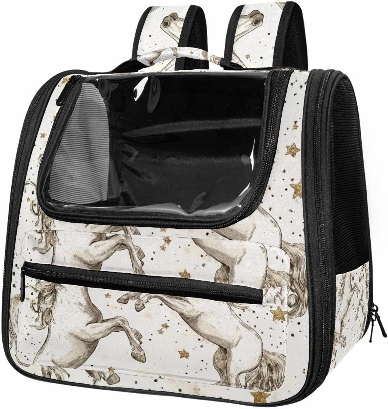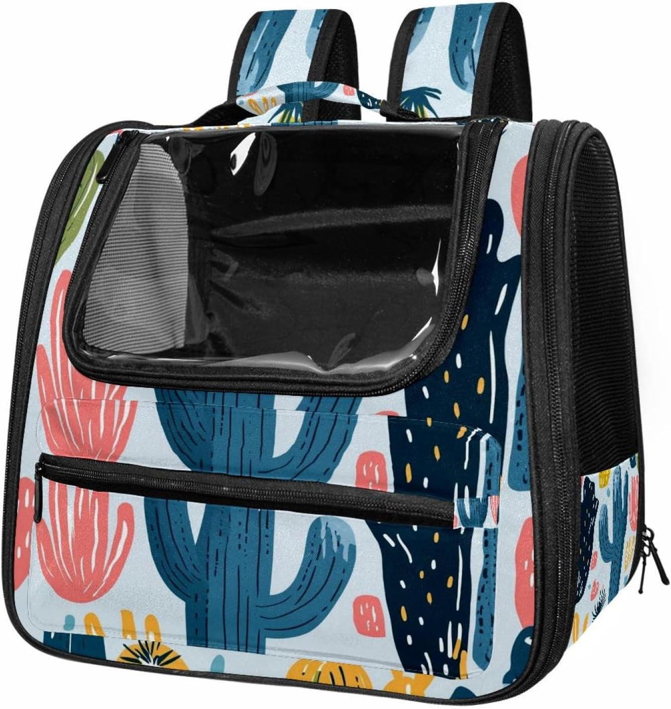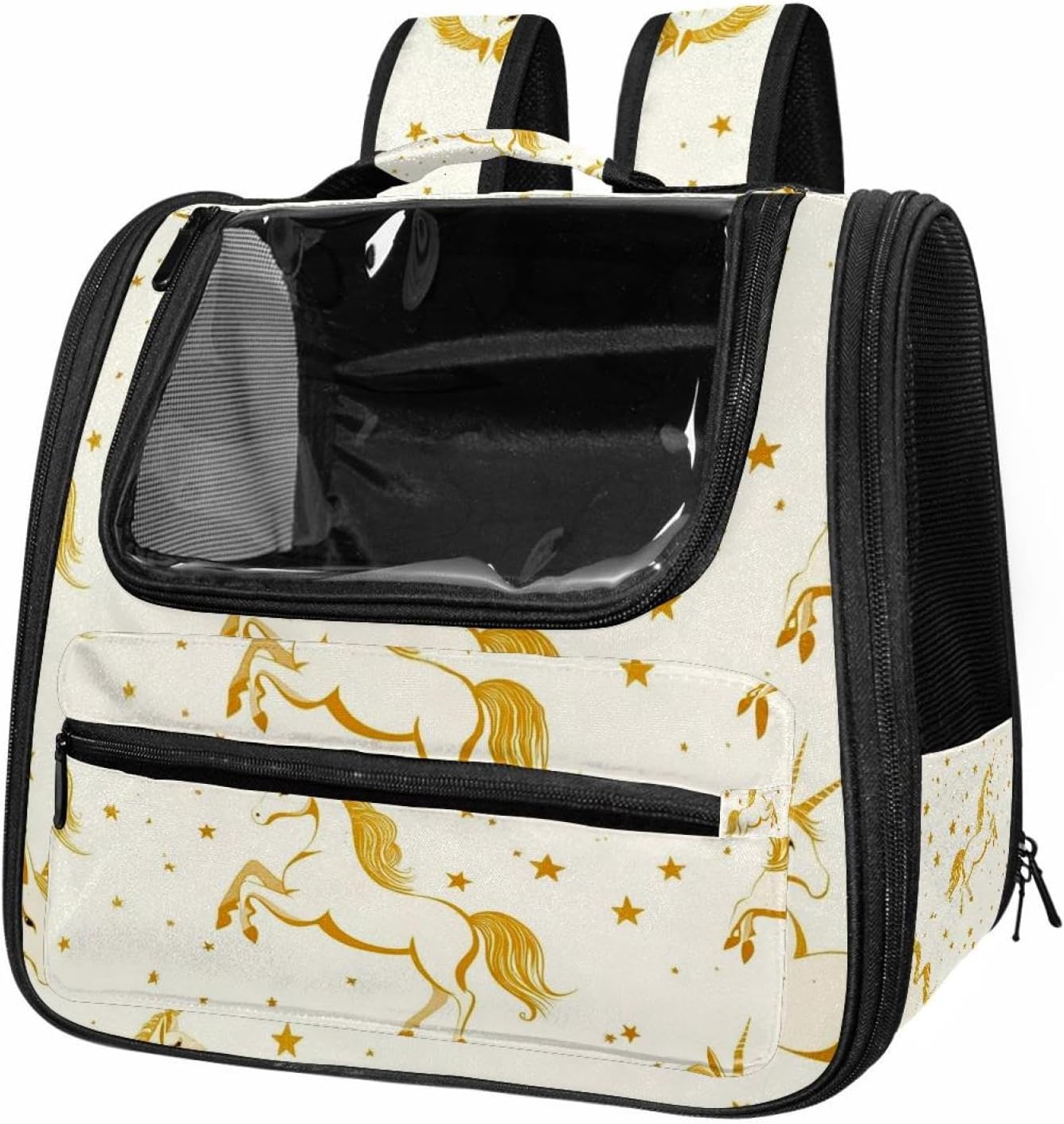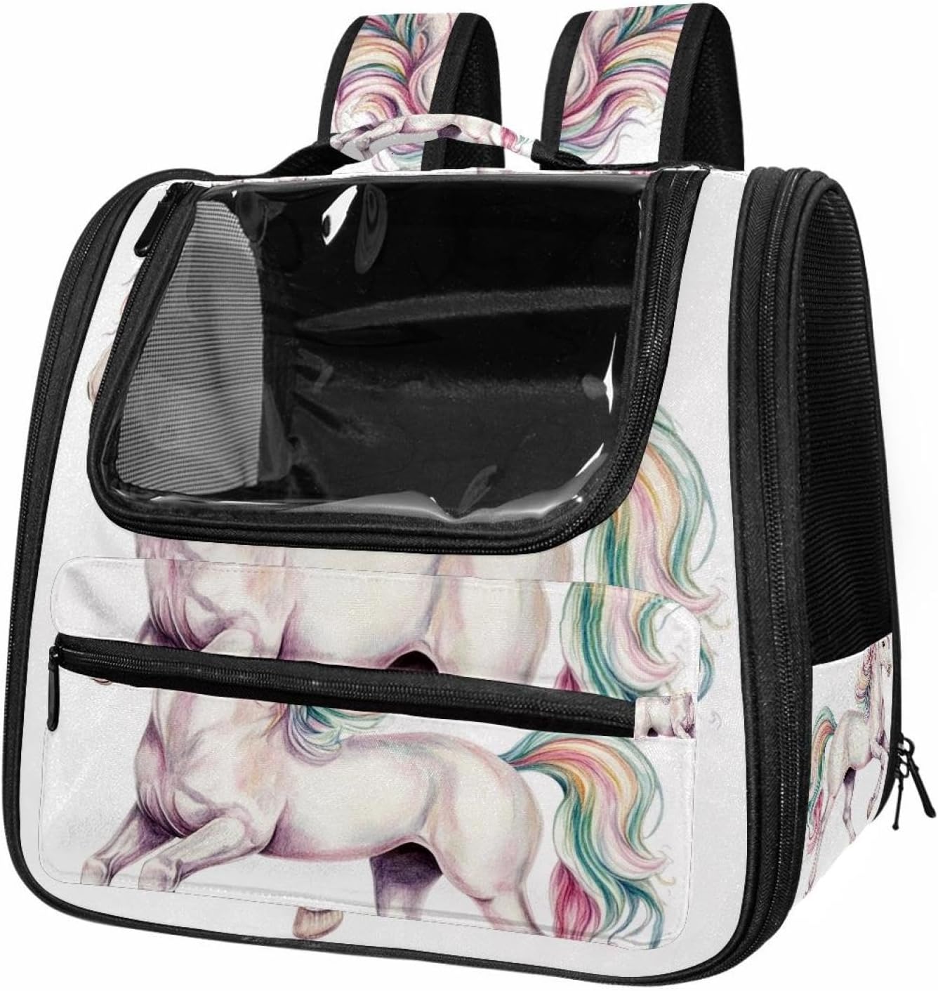 Well made: Cat Backpack Carrier is made from 900D oxford fabric, pp webbing, velvet, nylon, which is very sturdy, environmentally friendly and breathable. Not easily scratched by pet’s claws, pet backpack carrier is SAFETY & ANTI-SCRATCH. The back padding will give you a comfortable and breathable experience. Ventilated Backpack: With a breathable window in the front, this pet backpack allows cats to enjoy the sun without feeling stuffy. There are two side pockets and one big front pocket, and you can take foods or toy for your kitten pet. It is big enough for cat to turn around, and there are side pockets and hook holes, you will enjoy the greatest convenience when taking your cat out. Perfect size: Cat carrier is 15.75x9.84x13.78in/40x25x35cm. Fits most small/medium sized cat, dog, and pet. Quality fleece bed provide a comfortable place for your pet. Lightweight and easy to carry to all places. Built-in harnesses keep your naughty friends from escaping. Removable cosy mat for easier cleaning and let your pet enjoy it inside. Easy to carry: The adjustable shoulder strap of pet carrier bag help you hands-free carrying and makes it the most safe and convenient pet carrier bag for your travel. Seat belt design provide pets with safety protection throughout the trip. Pad protection keep your pets comfortable during travel. Unique Design: Innovative inside graphic design gives you a stereoscopic 3D visual experience. You also send us the photos you interest to make your unique dog or cat carrier. Pet bag is also a amazing gift for pet lover.