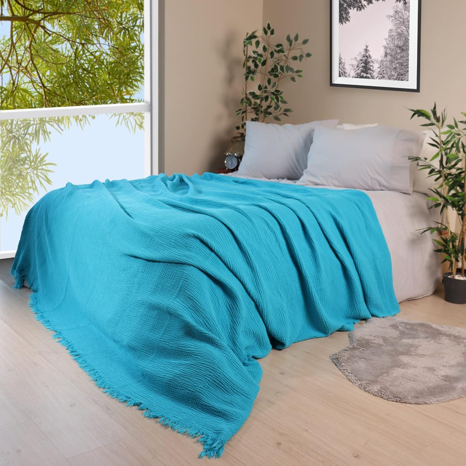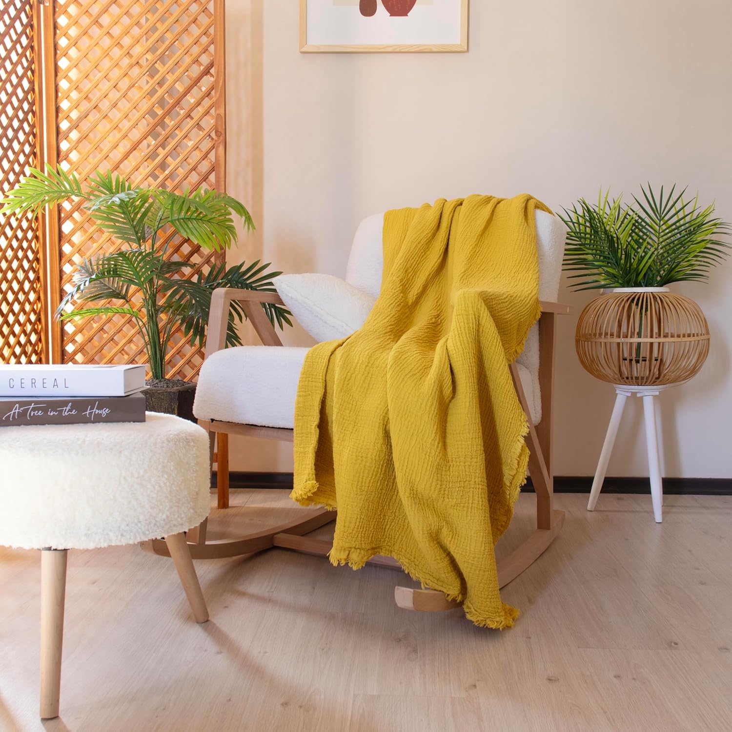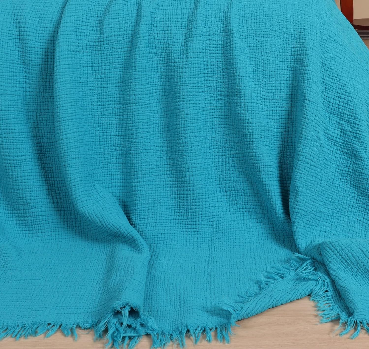| Product Care Instructions | Easy Care & Fade Resistant: This machine-washable muslin throw blankets offers hassle-free maintenance. For best results, wash at 40°C/104°F and tumble dry on low. Avoid bleach. Made from high-quality, long-staple Turkish cotton by PUSKUL TEXTIL, it gets softer with every wash, Machine Wash |