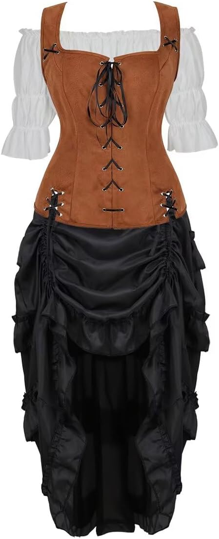 Womens renaissance vest, pirate vest, medieval vest,steampunk vest, viking vest costume for women. Womens pirate vest is made of faux leather, lace-up front and back design, soft and comfortable to wear. This vest is perfect for steampunk costume, pirate costume, renaissance costume,renaissance dress, viking costume, vistorian costume, medieval costumes for women. Great to wear this costume top for steampunk party, pirate party, Perfect for party, cocktail, cosplay, wedding,renaissance faire etc. Pirate Vest Size Chart(Inch): X-Small:Body Length:22-23", Shoulder Width:14-15",Bust:35-37",Waist:29-31" Small:Body Length:22-23", Shoulder Width:14-15",Bust:38-40",Waist:32-34" Medium:Body Length:22-23", Shoulder Width:15-16",Bust:41-43",Waist:35-37" Large:Body Length:23-24", Shoulder Width:15-16",Bust:44-46",Waist:38-40" X-Large:Body Length:23-24", Shoulder Width:16-17",Bust:47-49",Waist:41-43" 2X-Large:Body Length:24-25", Shoulder Width:16-17",Bust:50-52",Waist:45-47" 3X-Large:Body Length:24-25", Shoulder Width:17-18",Bust:53-55",Waist:48-50"