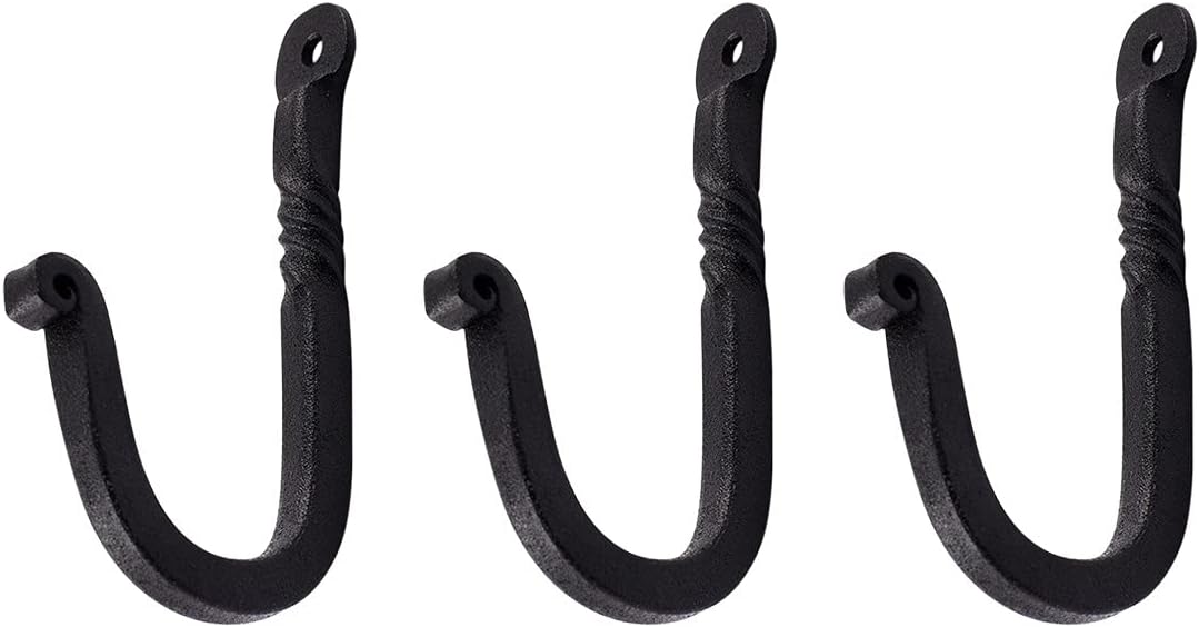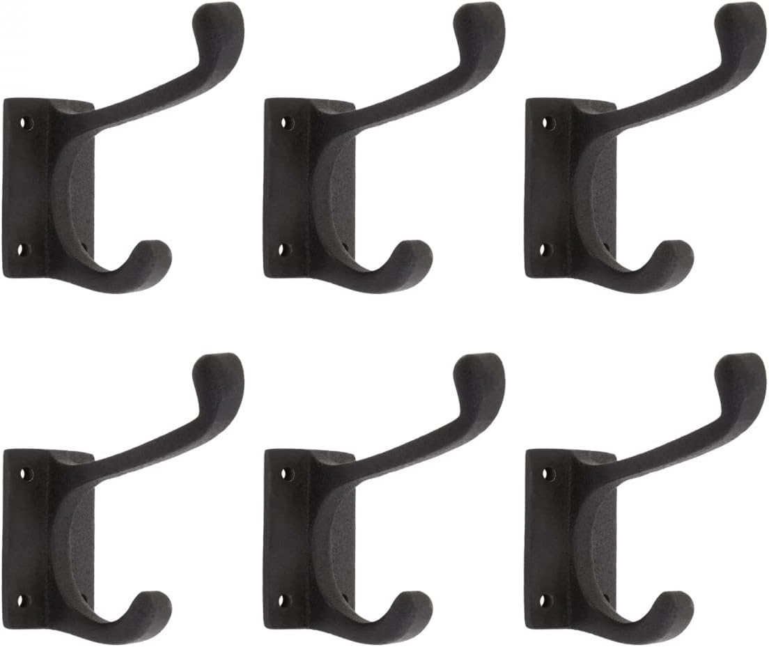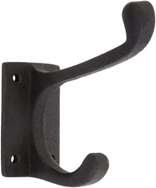 ANTIQUE BLACK CAST IRON WALL MOUNT COAT ROBE DOUBLE HOOKSThese double hanging hooks are made from industry standard cast iron material which is sturdy enough to withstand heavy items. These help you save space and keep your home organized. Our Double Hooks allow you to hang two items at once and are most popularly used on bathroom doors for towels and robes.FEATURES- The package includes mounting hardware for a super easy installation process- The cast iron double wall mount hooks with black powder coating stay intact for many years- Gives a classic old colonial charm with a modern sleek look to all your home equipment- Adds extra storage and organization to your home with these decorative hooks- Can be mounted directly on walls or furniture like closet doors or wooden boards- The edge is so smooth that will not damage your clothes or any item you hang onSPECIFICATIONS- Color: Black- Material: Cast Iron- Height: 2.25 In- Width:3.25 In- Projection: 1.25 In- Screws: 2VINTAGE DECORATIVE WALL MOUNTED HANGERSThese are ideal for your entryway, bedroom, bathroom, foyers, hallways, garden, closets and rooms with limited storage space. They look fantastic in either a contemporary bathroom and kitchen or a Victorian hallway.SATISFACTION GUARANTEERenovators Supply offers you great value products for your money and a perfect way to spend wisely. We also provide 30 days guarantee with no fee.