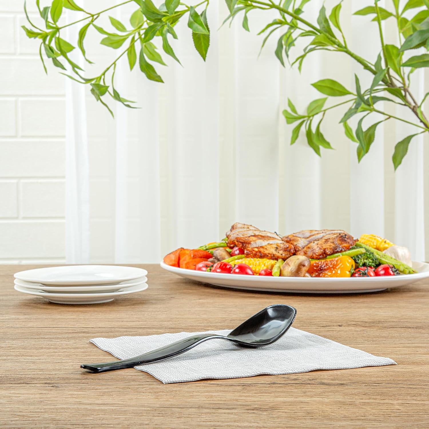 Enhance your foodservice experience with our Cater Tek Black Plastic Serving Spoons. These large serving spoons feature a generously sized bowl, perfect for scooping and serving substantial portions of food effortlessly. The ergonomically designed handle of these plastic serving spoons ensures a comfortable grip, making serving easy and reducing hand strain. Crafted from premium plastic, these disposable spoons are ideal for serving a variety of hot and cold dishes, from soups and stews to salads and desserts. With their disposable design, these plastic spoons promote fast and efficient cleanup after your event. Measuring 8.5 inches in length by 2.36 inches in width by 1.38 inches in height, these serving spoons are sized for convenience and versatility. Sold in a 100 count box.