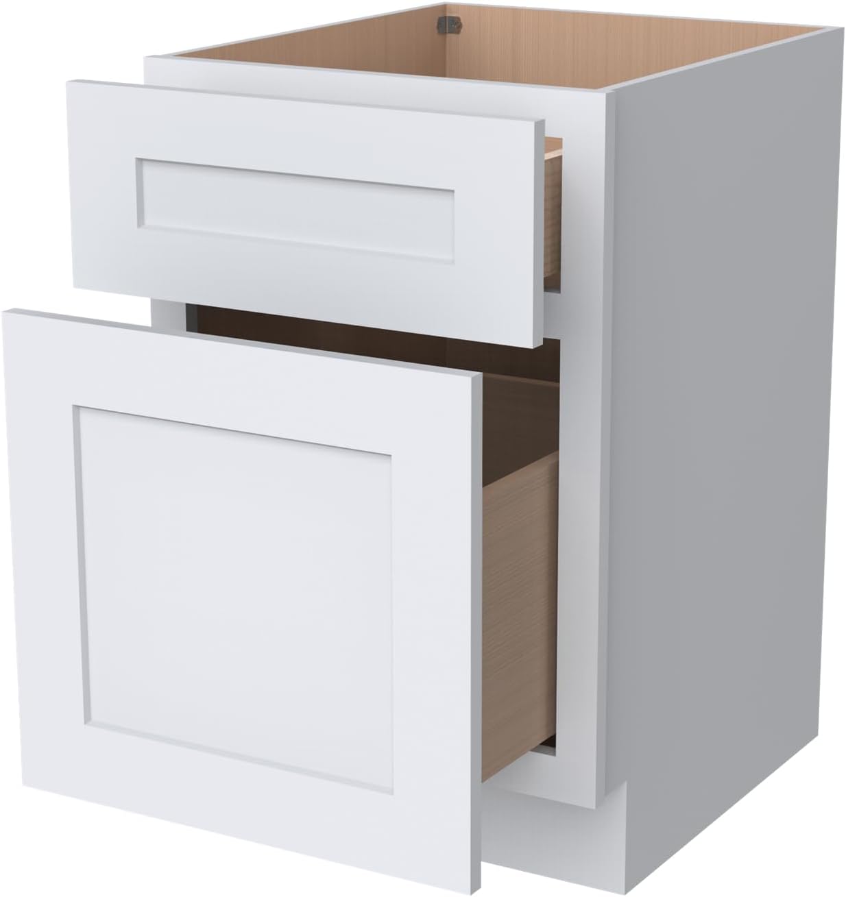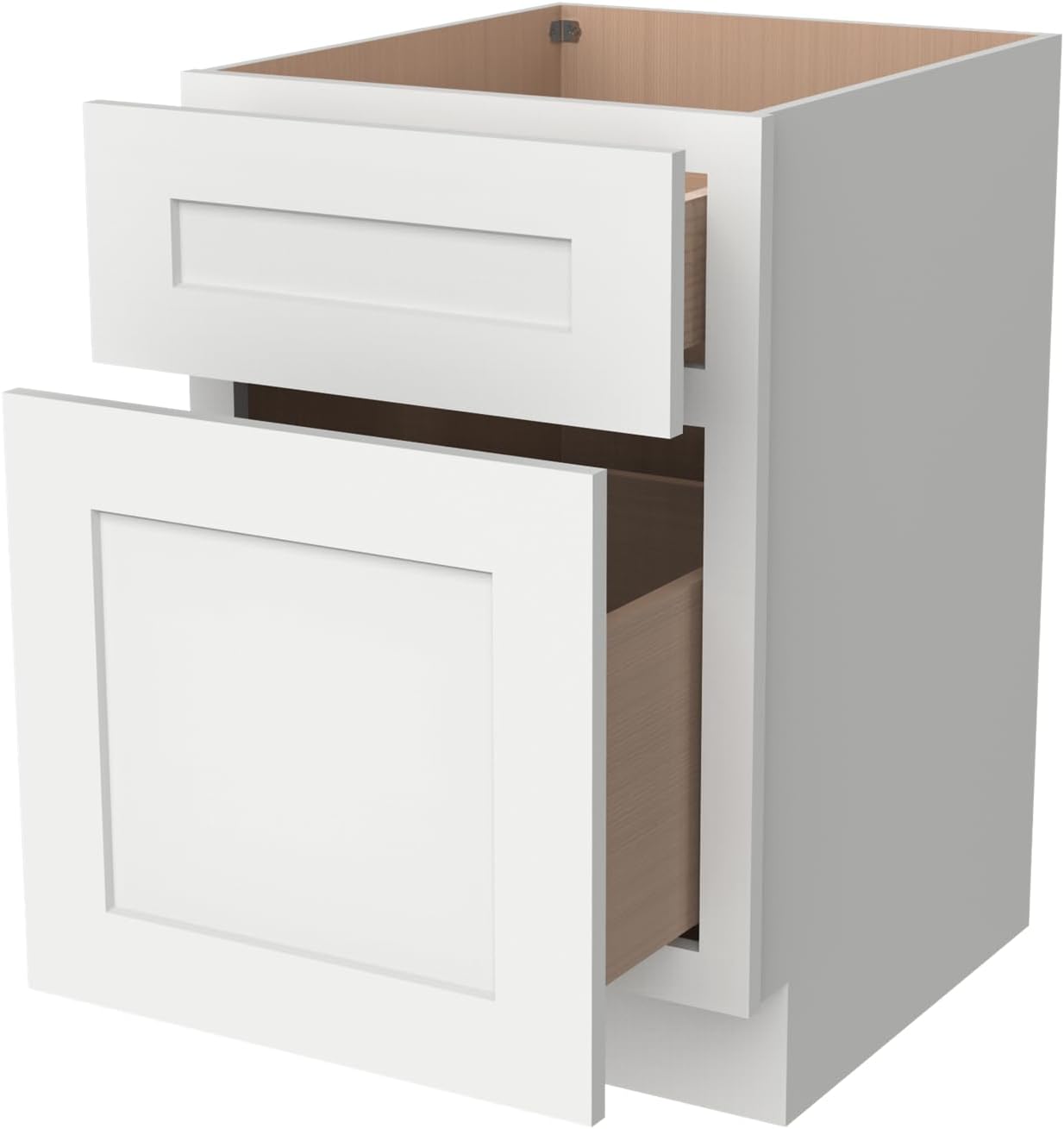 Measuring 18”W × 21”D × 29.5”H, this solid wood base cabinet is the epitome of sophistication and practicality, featuring two drawers of different sizes to accommodate all your storage needs. Available in Newtown Style with three colors. -New Town Series: This series is crafted from a combination of solid wood, plywood, and hardwood, offering a sturdy and stylish storage solution. The drawer doors in the New Town Series are narrow Shaker full overlay doors with mortise and tenon construction. Compared to the Shaker Series, the New Town style features a modern aesthetic subtly infused with hints of classic elegance. Offers Three stunning color options to suit any decor:1. Charcoal Black2. Origami White3. Jade GreenThe interiors of the Newtown cabinets, available in all three colors, are UV coated, combining environmental friendliness with health and safety.◆◆The UV coating not only enhances the visual appeal but also contributes to the health and safety of your home environment by minimizing harmful emissions.