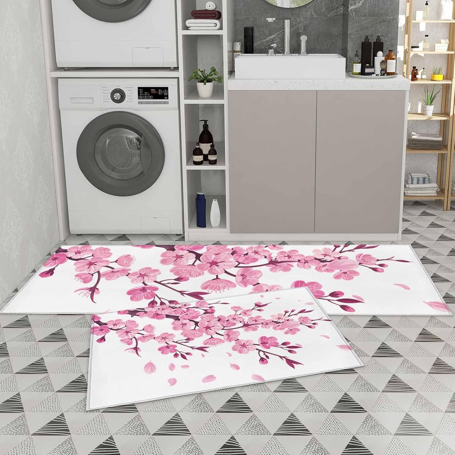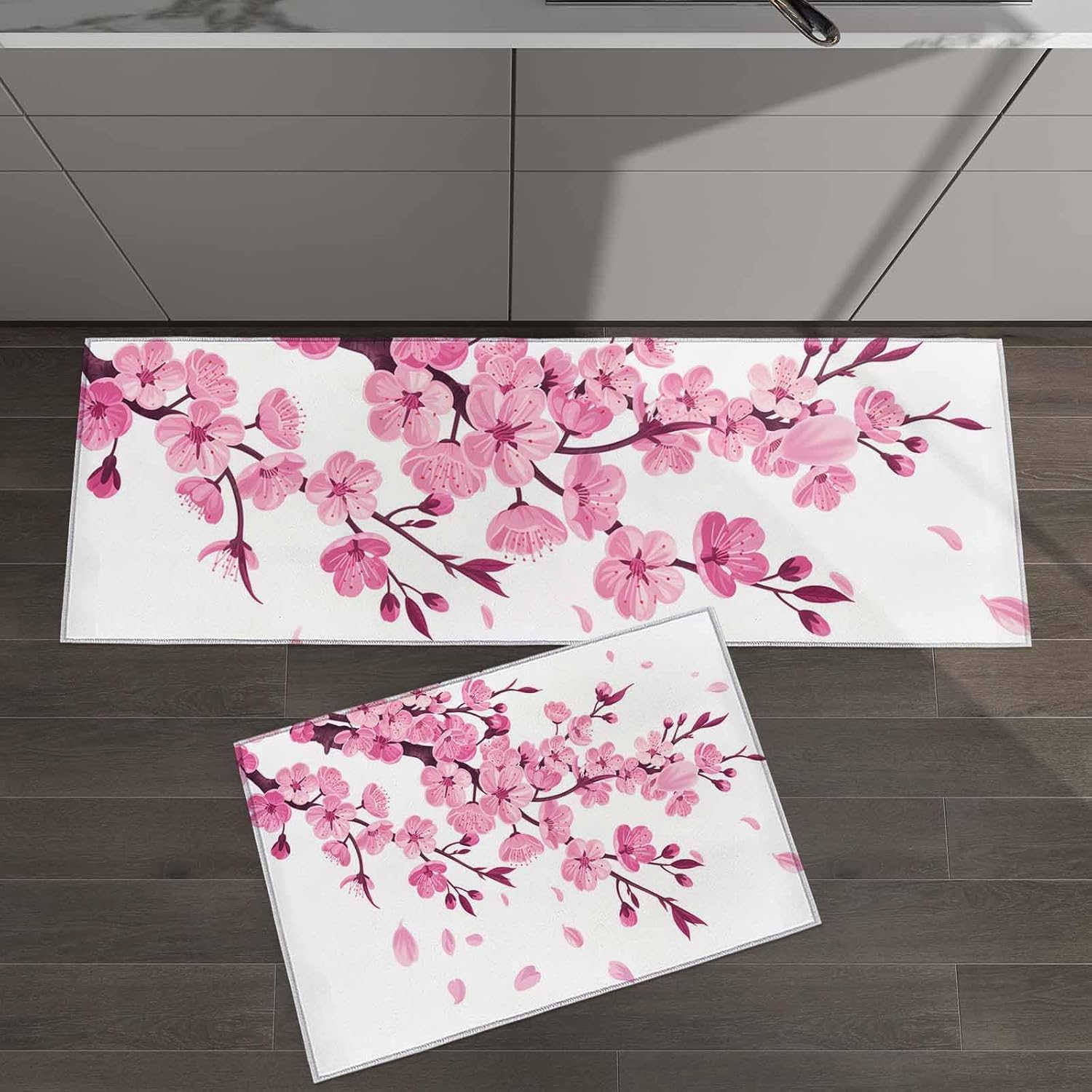 Kitchen floor mat is durable enough against deformation for long-term use. Beautiful pattern design ideal for brightening up your kitchen. Low Profile Low profile height better prevents tripping over the rugs and can be safely placed in door way or entryway. Rubber Dot Backing Non-skid backing keeps the rug in place and protects the floor. No additional rug pad needed. It is suitable for applying on multiple surfaces, such as wood, ceramic, laminate, marble, concrete. Tips The following tips are applicable to all rugs. Open rug fully and place on CLEAN, FLAT, DRY floor. Water under rug may cause slippage. Rug must always be placed on flat dry surface during use. Attention If the mat you receive has creases due to transportation, please lay it flat for 1~2 days to remove the creases on the carpet before using it for the first time, or wash and dry the kitchen mat.