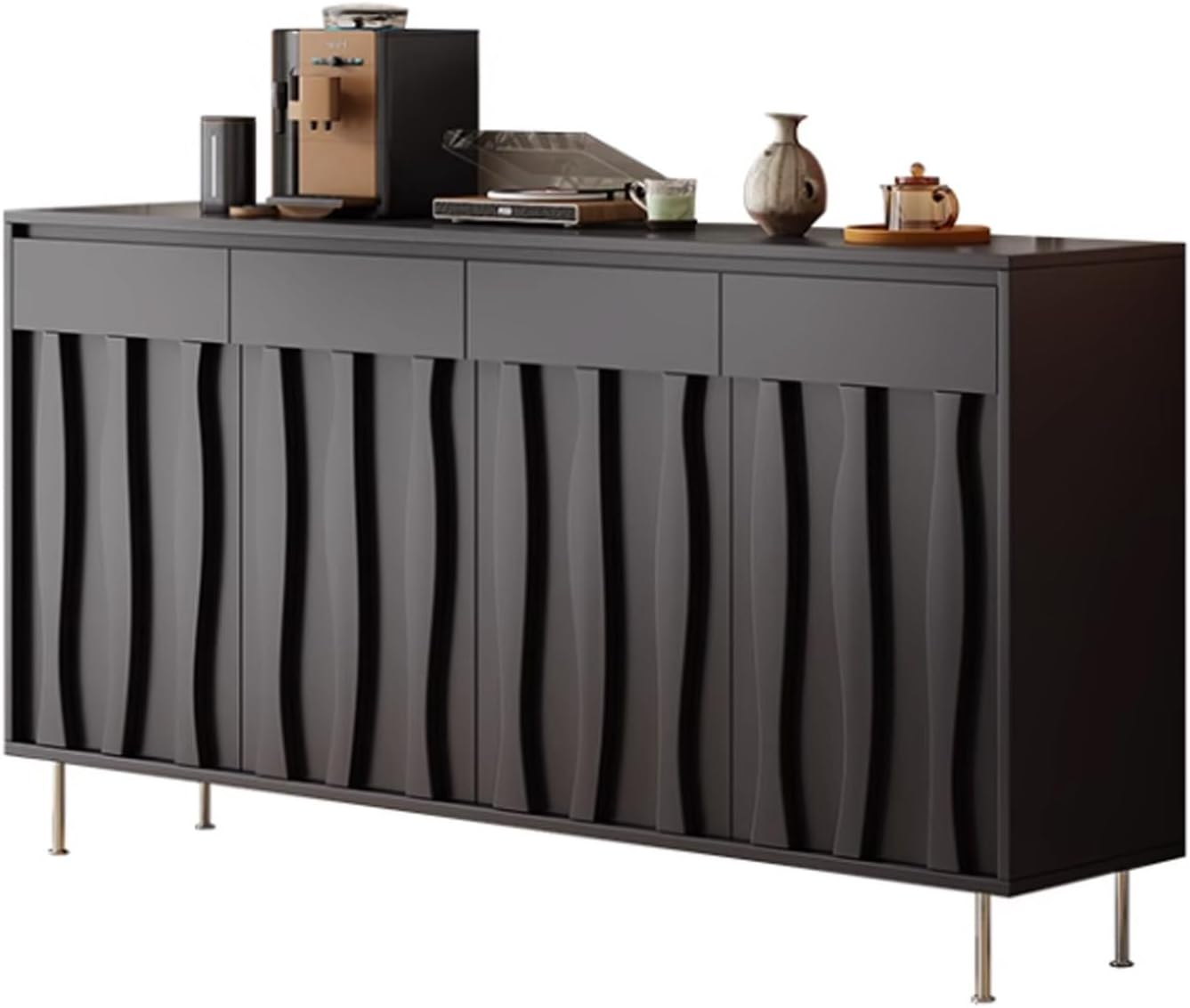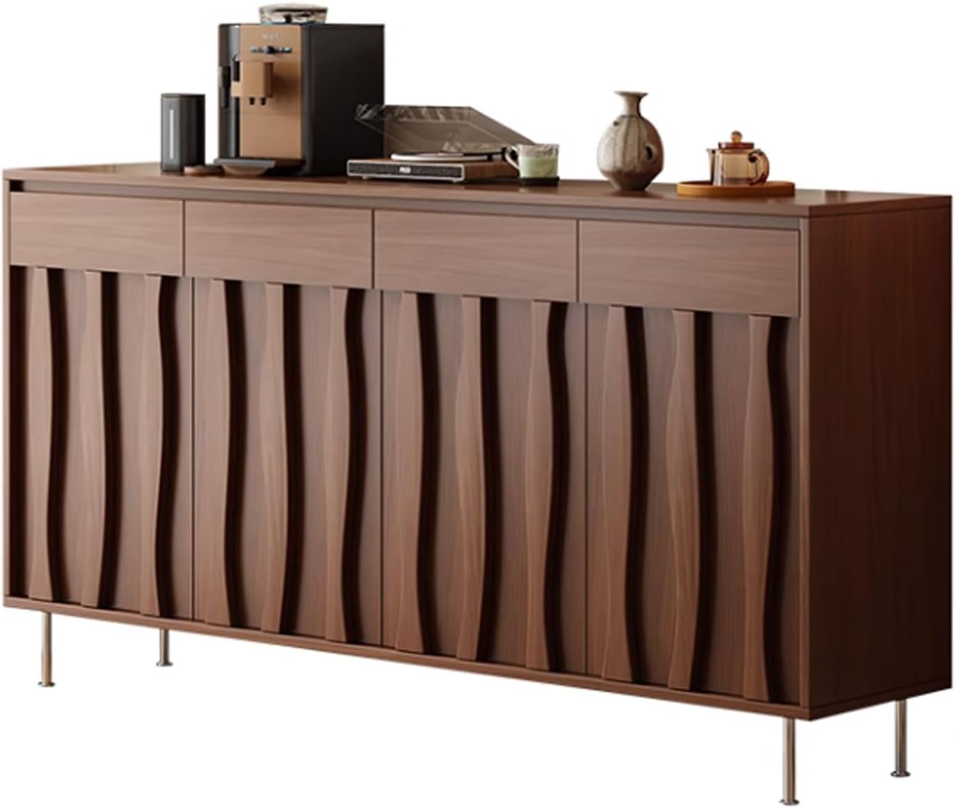 The GUAWJRZDP retro-style multi-functional sideboard offers ample storage space. Its sturdy stainless steel legs provide excellent support, and the scientifically divided space maximizes comfort and convenienceThe Coffee Bar Cabinet doors feature textured panels with a warm, vintage feel, while the smooth curves add a touch of elegance to the rustic wood. The open countertop provides space for items like a coffee machine, record player, and potted plants, showcasing your taste and lifestyle while enhancing the elegant ambiance★ Product parameters:Product Name: Vintage retro style sideboard, chest of drawers, Large Sideboard Buffet Cabinet with Storage, Kitchen Buffet Storage CabinetMaterial: wood+Stainless steelColor: Black , Brown , Brown+blackSize: 80x40x95cm/31.4x15.7x37.4in,100x40x95cm/39.3x15.7x37.4in,120x40x95cm/47.2x15.7x37.4in,140x40x95cm/55.1x15.7x37.4in,160x40x95cm/62.9x15.7x37.4inAssembly method: Self-assemblySuitable scenarios: Kitchen, living room, entryway, bedroom, dining room★ Note:1. There may be some differences between the picture and the product due to display and lighting, please refer to the actual product.2. Because it is processed by hand, the finished product usually has an error of 1-2 cm, please understand.