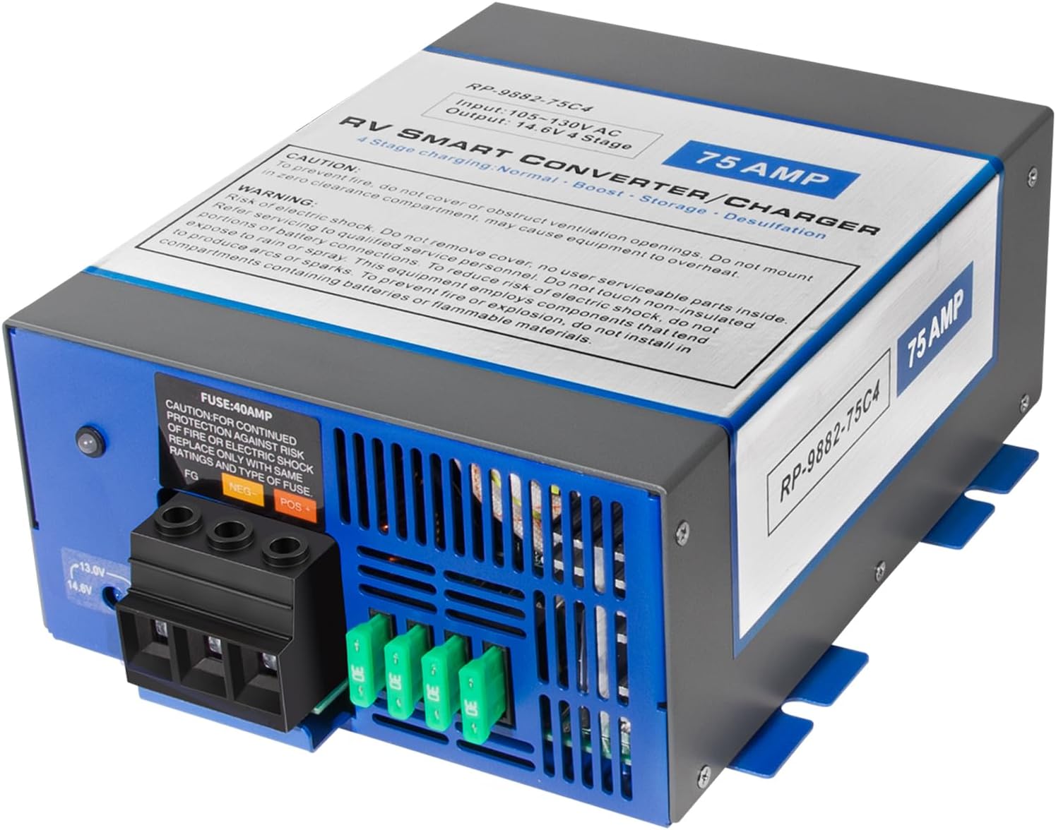Upgrade your RV’s power management with this RV Converter, available in 65A capacities. Engineered for reliable 12V DC output from standard 110V–120V AC sources, including shore power, generators, or other AC inputs, this converter doubles as a smart battery charger, featuring a 4-stage charging system that helps extend battery life and optimize performance. Whether you're powering appliances or maintaining your battery bank, it delivers clean, consistent power with built-in protections for peace of mind. Ideal for all RV classes, campers, and trailer systems.
