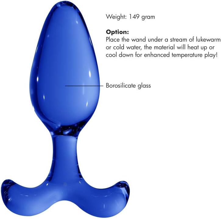 The unique shape of this beautifully handcrafted wand has been designed for both vaginal as well as anal play! Place the wand under a stream of lukewarm or cold water and the premium borosilicate material will heat up or cool down for enhanced temperature play. This beautiful wand is shatterproof, non-porous, body safe and will give a lifetime of pleasure! Product Height: 18 cm. Product Diameter: 3,7 cm. Insertable Length: 15 cm. Material: Borosilicate Glass.