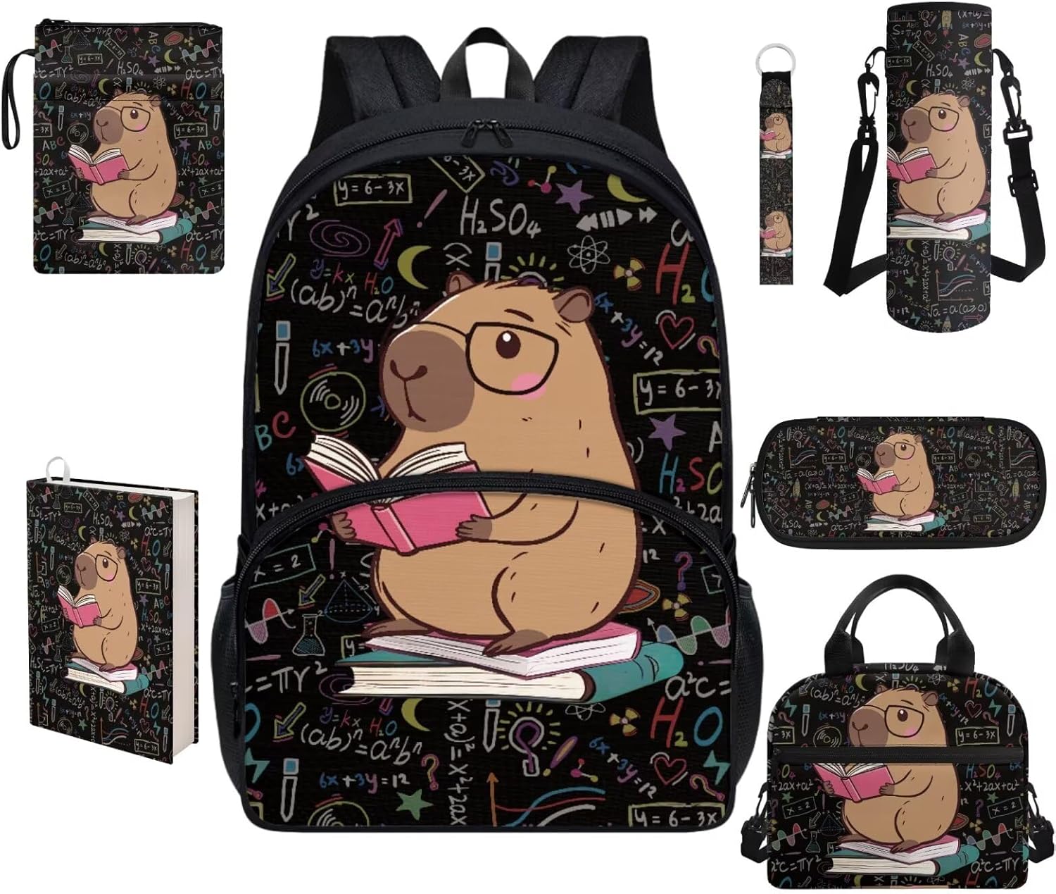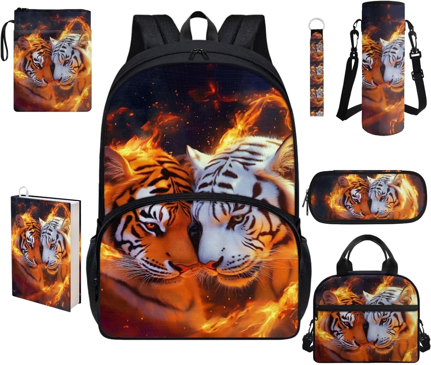 Kids School Backpack with Lunch Bag Set for Boys Girls ★ Package includes: 7Pieces: 1 * Backpack + 1 * Lunch bag + 1 * Pencil Case + 1 * Book Sleeve + 1* Book Cover + 1 * Key chain + 1 * Water Bottle Holder.This backpack set is suitable for 5-19 years old kids ★ Features: Lightweight,Portable,Durable.Large capacity and storage space.Most of your daily necessities can be loaded.Side pockets on both sides of the bag, can place phone, wallet, bottle, umbrella, etc.Thicken breathable strap design, comfortable to carry ★ Occasion: The backpack set apply for a wide occasion, not only suit for office, school, travelling, camping, hiking and other outdoor activities, but as a quite beautiful and appealing gift for friends, lover, kids, birthday ★ 1-2cm error of measuring is a reasonable range due to different measurement methods ★ Please note slight color difference should be acceptable due to the light and your computer screen