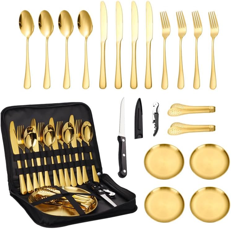 Material: stainless steelPolishing process: Cloth polishing (mirror polishing)Set list: table knife*4, steak knife*1, table spoon*4, table fork*4, barbecue plate*4, seahorse bottle opener*1, bread tongs*2Style: modern simpleStainless steel material: 410 stainless steelSpecifications: Silver 20-piece set (for 4 people)Specifications: Gold 20-piece set (for 4 people)Product quality level: first-class productStyle type: simple styleProduct category: Knife, fork and spoon set.About our BrandOur brand is GOODJAYVEN. We have always been committed to Household items. Do our best to bring more creative products to our customers.