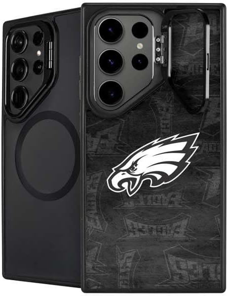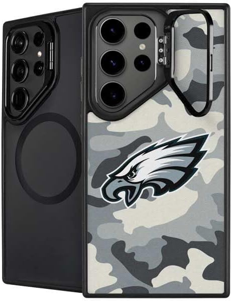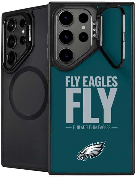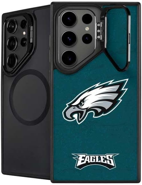 The NFL Philadelphia Eagles Retro Logo Kickstand Case compatible with Galaxy S25 Ultra is the ultimate in versatile protection and convenience. Featuring an innovative lifted camera ring with a built-in stand, it allows hands-free video watching with adjustable angles from 0 to 150 degrees. This premium Philadelphia Eagles Case supports wireless charging and is fully compatible with MagSafe, offering a sleek design without compromising on durability or functionality.