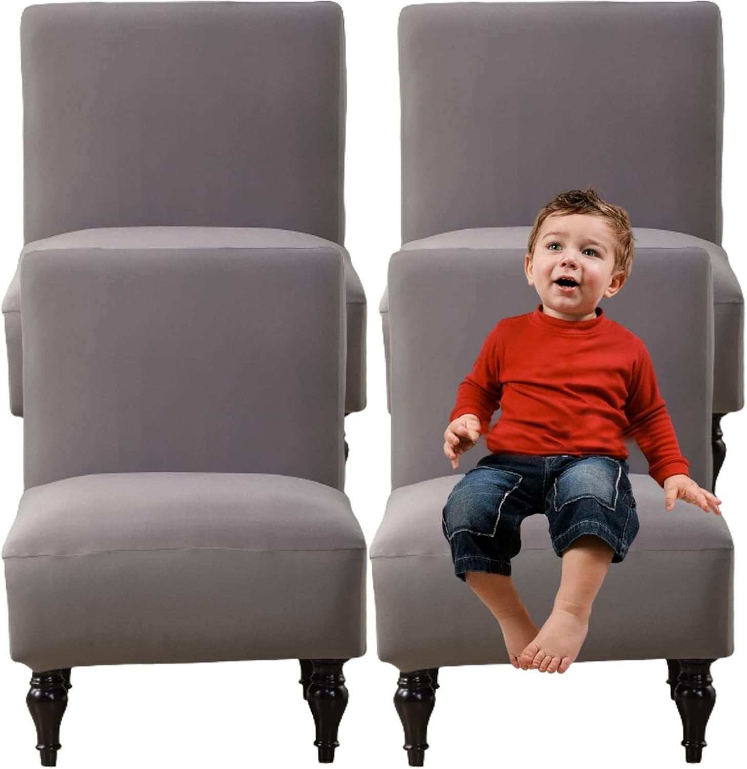 Why choose us?Chair Slipcovers is perfect for homes with kids, dogs and cats,it safeguard your dining chairs from stains, dirt and pet damages.Fit for most Armless Chair,Chair Back Width :19.5-23.5in,Chair Back Length :13-17in,Seat Length: 19.5-23.5in,Seat Width: 18-22in.Before buying, please measure your chair to make sure it is the right size.Chair covers machine washable for easy care and maintenance, separately in cold water on the gentle cycle, do not use bleach. Tumble dry low, do not iron.Suitable for most Armless Chair:Chair Back Width :19.5-23.5inChair Back Length :13-17inSeat Length: 19.5-23.5inSeat Width: 18-22inTIPS:1.because we are making our products by hand, there may be a deviation of about 2-3 cm.2.Because slipcover is elastic, do not iron. If ironed, will lose some elsticity.3.Due to different computer/screen displays, the color of the product may be a bit different from the picture.Dear buyer:If you have any questions, please send us an email and we will provide you with a satisfactory solution.