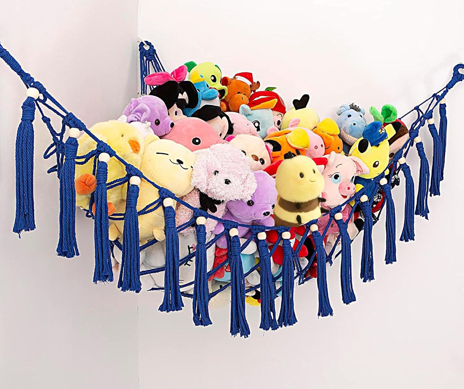 Transform your child's room into an organized paradise with this YEESUPE stuffed animal storage hammock! This innovative corner hammock provides the perfect solution for storing and displaying plush toys, creating an adorable floating display while maximizing space. The hammock features sturdy construction with black hanging straps that securely hold your little one's favorite stuffed friends. Perfect for bedrooms, playrooms, or nurseries, this versatile storage solution doubles as charming wall decor. The generous capacity allows you to store multiple plush toys of various sizes, keeping them off the floor and within easy reach. Installation is straightforward, and the hammock's design complements any room decor while adding a playful touch. Keep your child's treasured stuffed animals neat, visible, and dust-free while adding a decorative element to their space. This storage hammock helps teach organization skills while making cleanup time fun and easy.