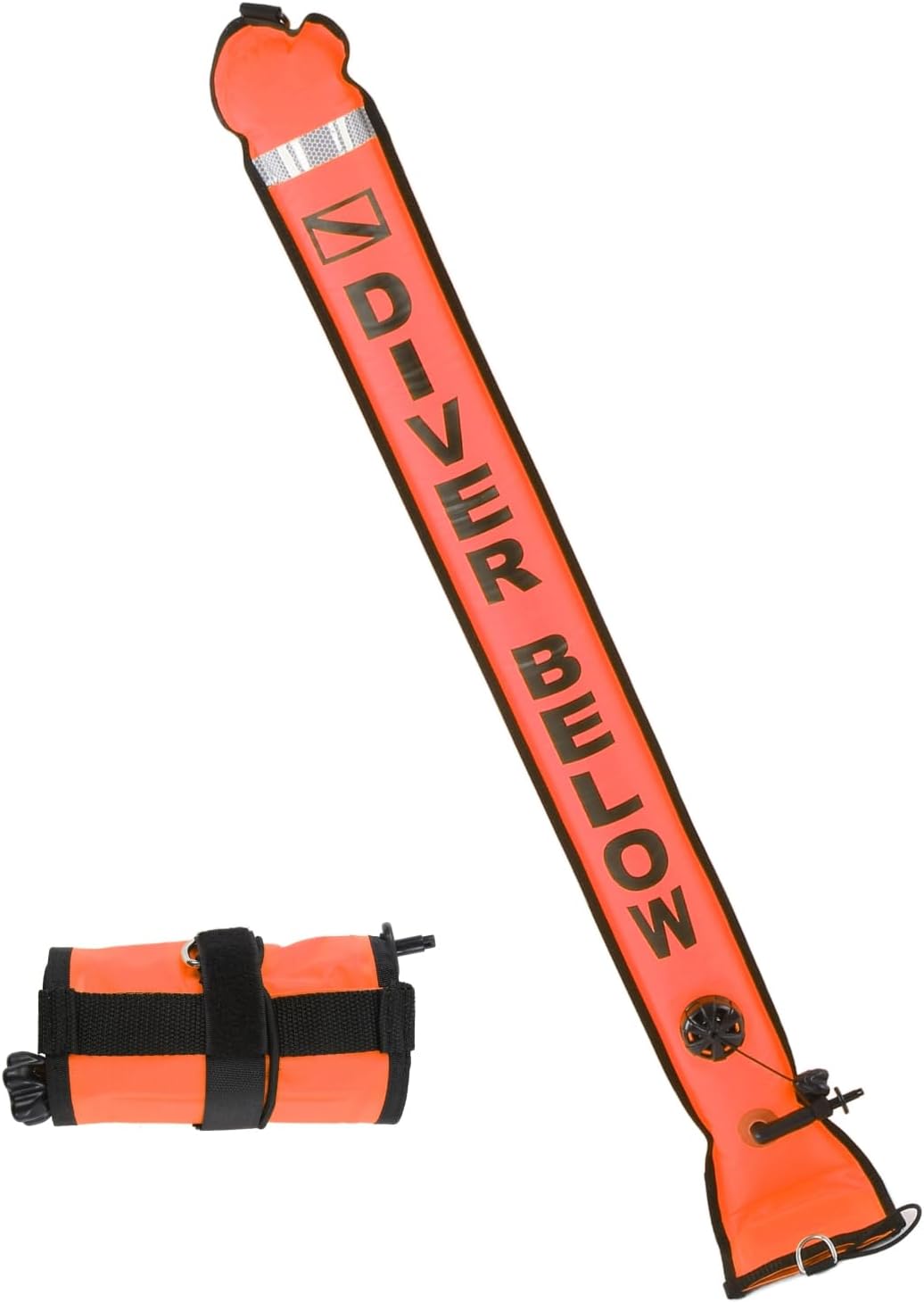 Nylon Material: Surface marker buoy is made of 210d nylon material, the scuba diving open bottom marker is strong. The safety sausage signal tube two sides are glued and sealed and then stitched for reinforcementEasy to Use: Diving surface marker buoy equipped with an explosion proof valve, if the gas is overcharged, the gas will leak from the explosion proof valve, speeding up the deflationDouble Sided Reflective Strips: High visibility inflatable scuba signal tube reflective strips are designed on the surface marker buoy, surface signal marker buoy float can reflect light wellHook and Loop and Rubber Band Design at the Bottom: The surface marker signal tube is designed with hook and loop and rubber bands, safety sausage are double fixed, reduce the volume, convenient to carryStainless Steel D Ring: The top of the marker buoy is designed with a stainless steel D ring, scuba diving surface marker is convenient to hang on the D ring of the BCD during diving. Secondly, the D ring can also hang a flashlight or signal lightItem Type: Scuba Diving Surface Marker BuoyMaterial: 210D NylonProduct Size: 120x15cm / 47.2x5.9in Product Weight: Approx. 325g / 11.5ozMain Functions: Top D ring, reflective band, vent valve, inflation nozzle, secondary head inflation, one way membrane, bottom weight block, storage D ring, storage rubber band, storage hook and loop, and it can also be used with spoolsPackage List:1 x Scuba DivingSurface Marker BuoyNote:1. Please allow 1‑2cm error due to manual measurement. Thanks for your understanding.2. Monitors are not calibrated same, item color displayed in photos may be showing slightly different from the real object. Please take the real one as standard.3. Please note that the new type and old type of this product will be sent randomly, and make sure you will not mind before ordering.
