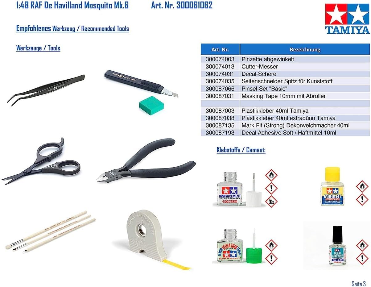 | Included Components | Tamiya 61062 1/48 De Havilland Mosquito FB-MK.6 Plastic Model Airplane Kit |