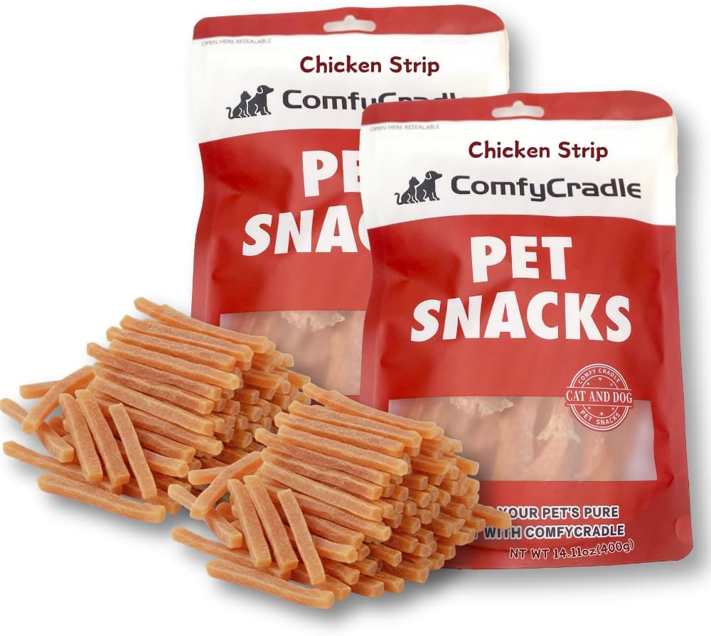 A Simple, Comforting Treat Made with Love At ComfyCradle, we believe that the best treats are born from the best ingredients. That’s why our Natural Chicken Strips are made with just one thing: 100% real, sourced chicken breast. We take premium, human-grade chicken, slice it into perfect strips, and slow cook it to create a wonderfully tender and chewy jerky your dog will find irresistible. Our process locks in the savory, authentic flavor of chicken without the need for artificial additives or fillers. This is more than just a treat; it’s a wholesome, high-protein snack you can feel good about giving. Whether you're training a new puppy or simply sharing a comforting moment with an old friend, trust ComfyCradle to provide the simple, pure, and delicious quality your pet deserves.