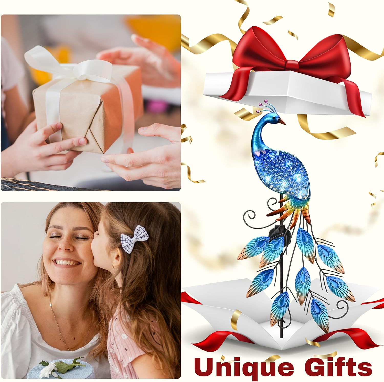 TERESA'S COLLECTIONS Peacock Garden Solar Stake, Wind Spinner Yard Art Sign for Outdoor Decor, Metal Purple Floral Windmill Decorative Garden Stake for Lawn Ornaments, Gifts for Mothers Day 37''