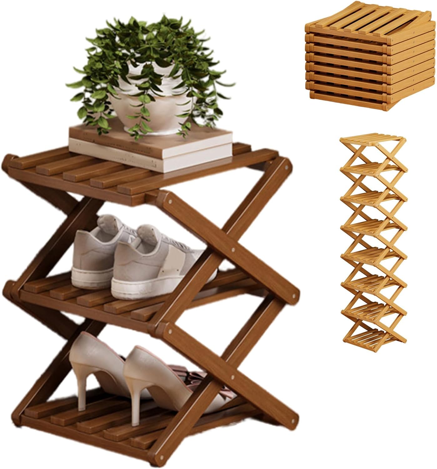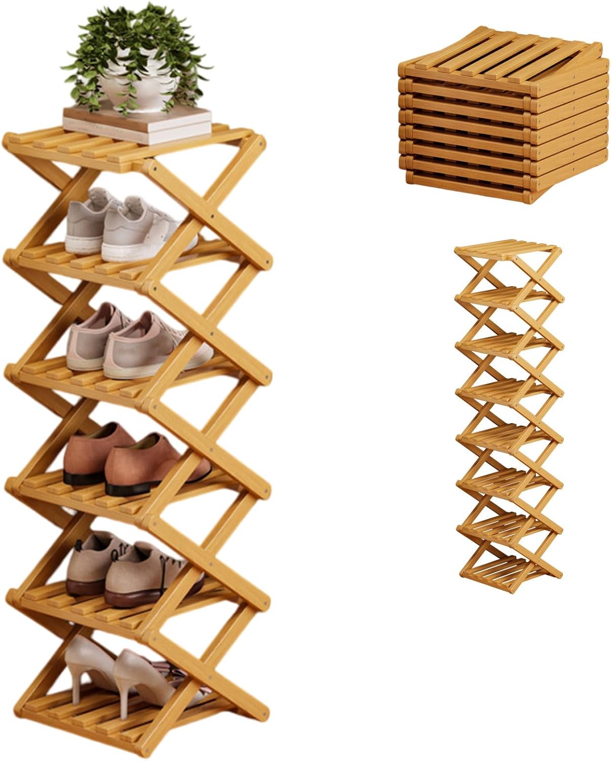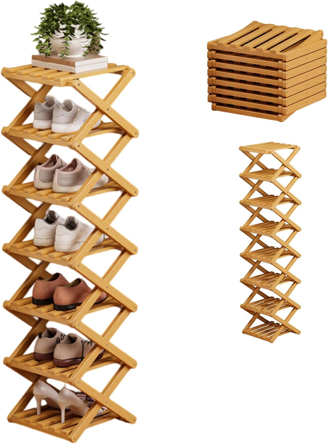 The 9-Tier No-Assembly Bamboo Rack For Shoes, Foldable 9 Tier Bamboo Shoe Rack, Collapsible Shoe Rack, Space-Saving, No Assembly Narrow Shoe Shelf For Entryway Closet Dorm