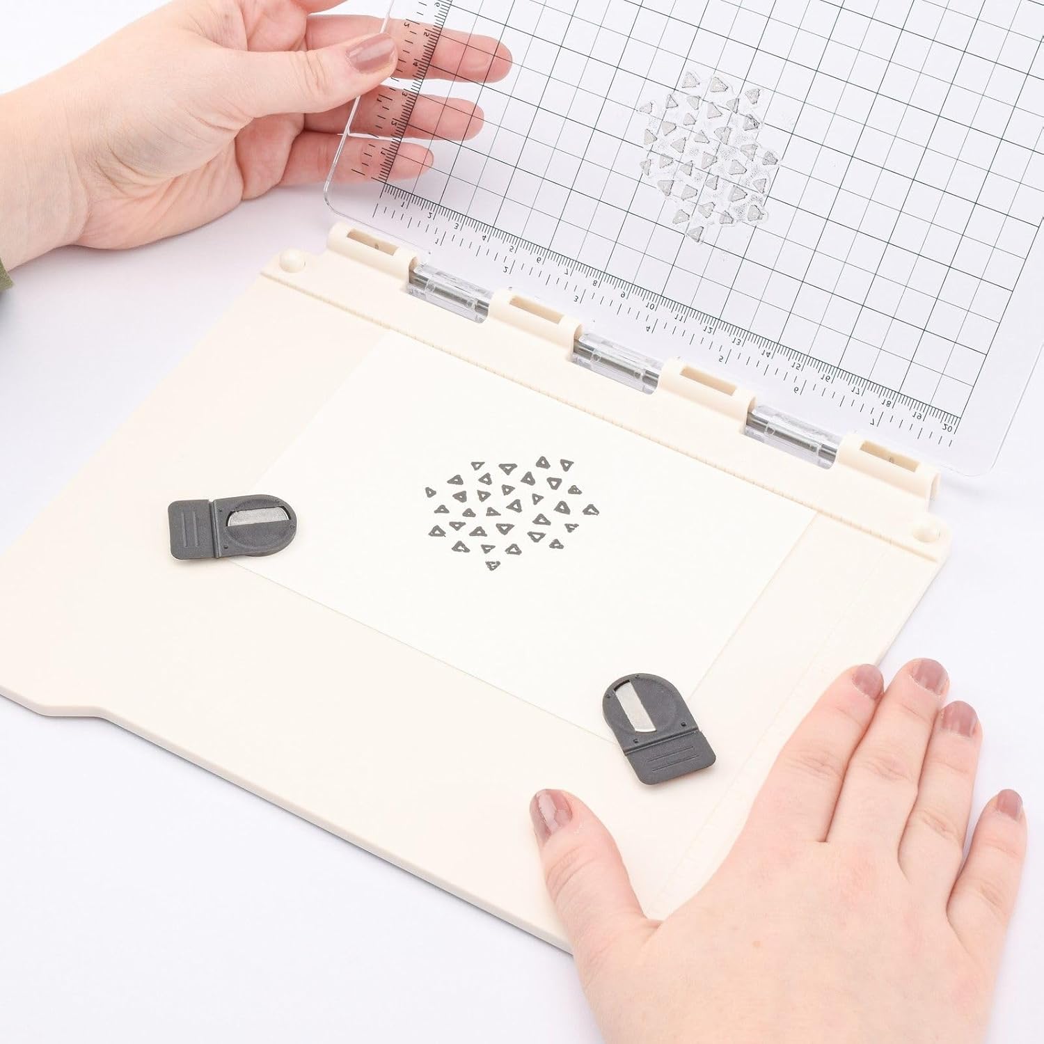 The stamp easy is the perfect tool for all your stamping projects. With this stamping platform you can use all clear and cling stamps because of the adjustable height! the surface has no edges on the side so scrapbook paper can be used as well. The package comes with full instructions.
