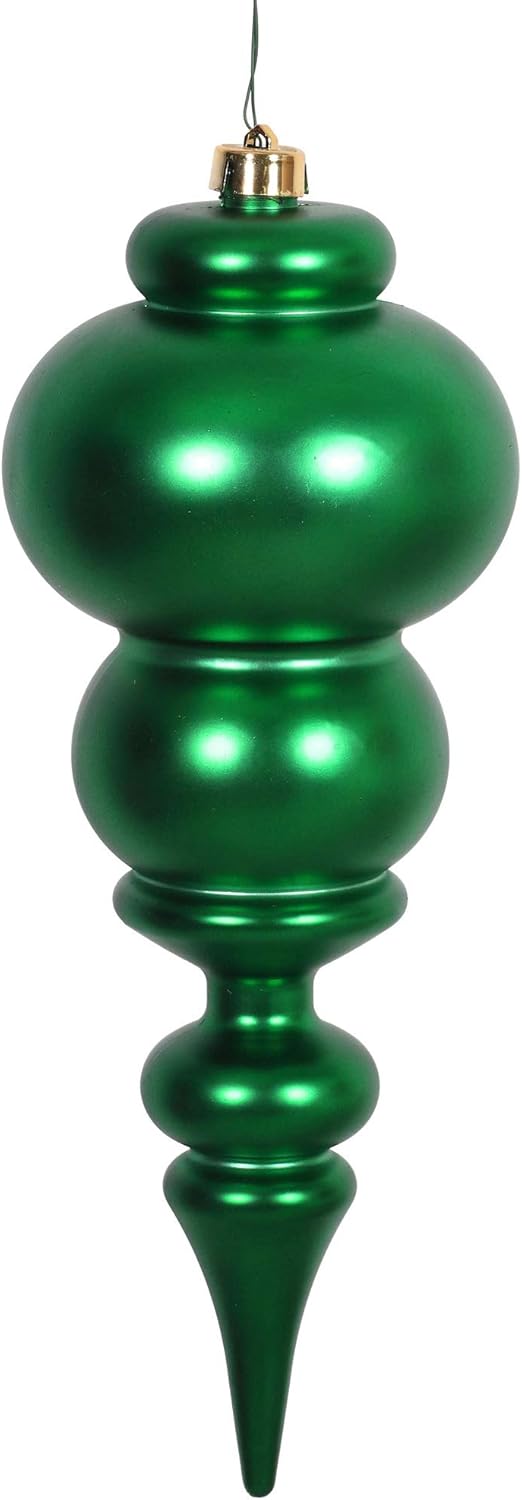 Vickerman 14" Celadon Shiny Finial Ornament. This item is made from a shatterproof plastic and UV resistant material for extended protection from fading and breaking. The cap is drilled and looped with floral wire to ensure it is reliable and ready to hang. This unique ornament is an exceptional addition to any collection as it matches well with a variety of décor and goes perfectly on a holiday tree.