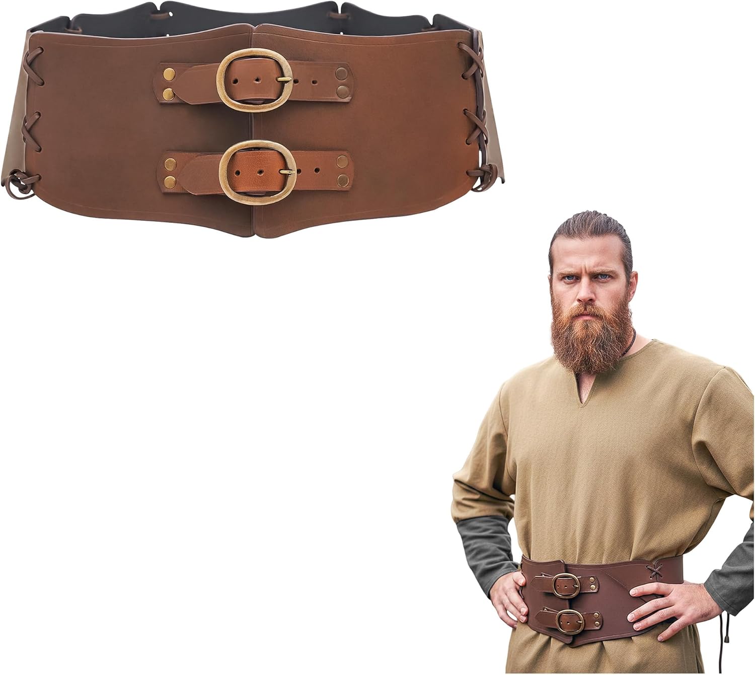 Fastened around your waist, this warrior leather belt makes you look like a true quester on his way to a new adventure. Because it is not just any belt, it is a warrior belt, crafted from the very best leather available by our skilled artisans. It is handcrafted from genuine buff leather that makes it extremely durable. It fastens using two simple belt straps with buckles made from Pure Antiqued Brass. Its total length is approximately 111.8 cm; for even more adjustability, one of the leather sheets can be untied from the main belt. At Lord of Battles, we are genuinely committed to offering nothing but the best to our clients. Every item is unique and is purely handcrafted. The highest possible standards are maintained by using the best quality materials. Innovation and creativity are the hallmarks of our company yet we stay true to history. Every article is obtained keeping ethics in mind and conserving the environment. Stand out at your epic historical event, at a wedding, cosplay, or a LARP event. Outshine the rest, with our super quality products made out of authentic materials and proudly relive history. We promise, you will be the star of the medieval event. Feel the true Lord of Battles, the most epic character, or simply a ruffian… with our products…you can be the character that the event requires. ..