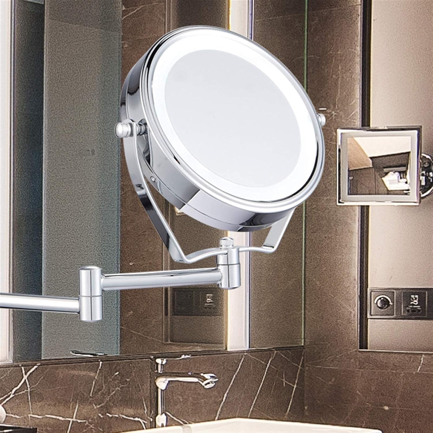 - Dual Sided: 7x Side - for Magnification 1x Side - for normal viewing; makeup application. - 360 Degree Swivel Rotation & DualArm Extend The extension arm and smooth rotation adjusts to all angles for a dynamic point of view - Built- in Long Lasting LED Lights No more bulb replacements - Comes with long lasting LED surround bulbs for equal light distribution. - Battery power supply: 4 x AAA batteries ( not included in the package) Specification: - Material: Metal - Mirror Glass: Silver Plated - LED Light: Equipped - Size: 6 inches / 15cm - Magnification: 7x - Mirror Shape: Round - Installation Type: Wall Mounted, Punching Package Includes: 1x Wall- mounted Mirror ( Battery powered) ★ Service- Our store operates in good faith and takes customer satisfaction as its purpose. We believe that you are satisfied with the quality and excellence of our products. If you have any questions, please feel free to contact us. We provide you with a satisfactory solution