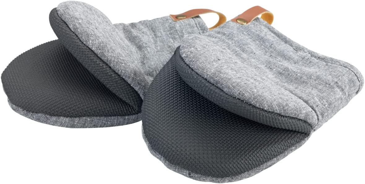 The Wenko Ada Mini oven mitts in modern grey are an ideal accessory for the kitchen and oven. The gloves are easy to put on thanks to their low rise and protect hands when touching hot objects. Baking Trays, Casseroles or Pots: Never touch them with bare hands when they are hot. Ada oven mitts help remove trays and molds from the oven without hassle preventing burns. Gloves protect hands and wrists. The gloves have an overall size of (An. x H x D: 14 x 19 x 5 cm and are comfortable to wear thanks to their cotton interior. Black palms are made entirely of neoprene, keeping hands protected. If they get dirty, they can be washed at up to 30 °C in the washing machine. The inner material of the pastry gloves is made from 90% polyester and 10% cotton. The outer material is a fabric composed of 80% cotton and 20% linen. The filling consists of 44% polyester, 34% cotton and 22% viscose. These simple oven mitts in a modern grey colour will fit into almost any kitchen interior. You can conveniently hang the pair of gloves with the small decorative brown bow. So you always have the practical Wenko Ada Mini gloves quickly on hand when you need them. This modern kitchen accessory is available in another version: The Ada Stripes gloves feature an extra long rise and silicone inserts for a secure grip. Material: Outer Material: 80% Cotton, 20% Linen; Filling: 44% Polyester, 34% Cotton, 22% Viscose; Inner Material: 90% Polyester, 10% Cotton Color: Grey, Black Dimensions (W x H x D): 14 cm x 19 cm x 5 cm. Net Weight: 210g