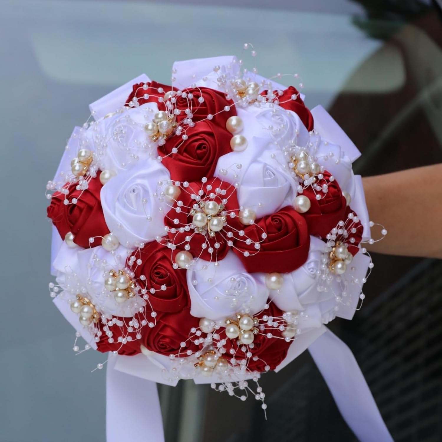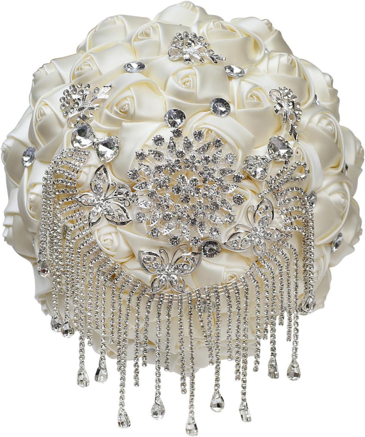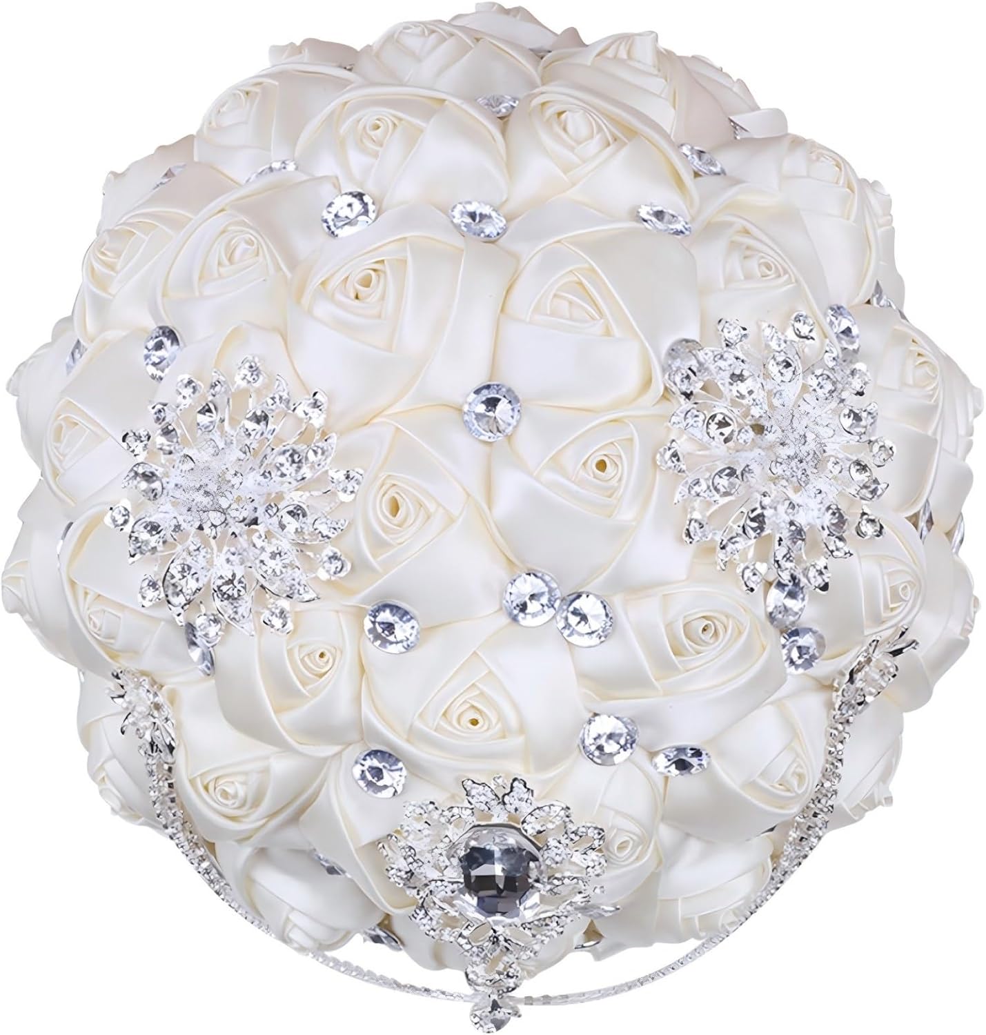 Gkvszy wedding bouquet for bride dark green is exquisitely handmade by satin roses, rhinestones and pearls, from top to handle, dedicate all these details to romance and elegance for your occasion.This handmade elegant bouquet is perfect as bridal bouquet, bridesmaids bouquet for wedding, bridal shower, quinceanera party, photo studio, prom, anniversary, etc..NOTE: Satin flowers are made of fabric, might be squeezed a little bit during shipping. Please sort the buds to help recover the shape.Please just feel free to contact us if there is any problem, we will respond within 24 hours and give you a satisfactory solution.