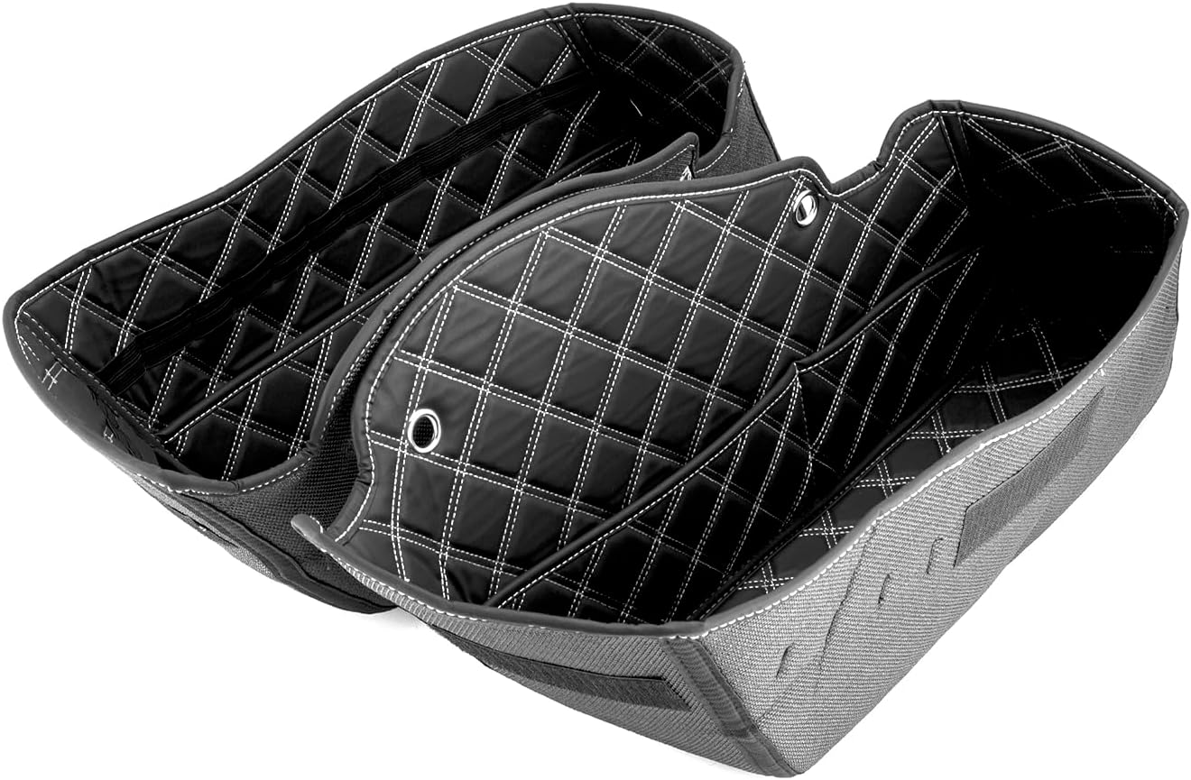 Specifications Item: Saddlebag Liners with Tool Pockets Three-layer Material: PU leather, Anti-slip burrs Color: Black Pattern: White Square Fitment List Compatible with Touring 2014-2023 Factory Saddlebag(Non-Stretched, Non-Tapered). Fit standard saddlebags, stretched saddlebags and CVO style tapered saddlebags; not fit for 5 inches stretched saddlebags. Compatible with ROAD KING FLHR/I 2014-2022 Compatible with ROAD KING CLASSIC FLHRC/I 2014-2019 Compatible with ROAD KING SPECIAL FLHRXS 2017-2023 Compatible with CVO ROAD KING FLHRSE 2014 Compatible with ELECTRA GLIDE STANDARD FLHT/I 2014-2022 Compatible with ELECTRA GLIDE ULTRA CLASSIC FLHTCU/I 2014-2019 Compatible with ELECTRA GLIDE ULTRA CLASSIC TWIN-COOLED FLHTCU 2014-2019 TC Compatible with ELECTRA GLIDE ULTRA CLASSIC LOW FLHTCUL 2015-2016 Compatible with ELECTRA GLIDE ULTRA CLASSIC LOW TWIN-COOLED 2015-2016 FLHTCUL TC Compatible with Electra Glide Highway King 2023 Compatible with STREET GLIDE FLHX 2014-2023 Compatible with STREET GLIDE SPECIAL FLHXS 2014-2023 Compatible with STREET GLIDE ST FLHXST 2022-2023 Compatible with CVO STREET GLIDE FLHXSE 2015-2022 Compatible with ULTRA LIMITED FLHTK 2014-2023 Compatible with ULTRA LIMITED LOW FLHTKL 2015-2019 Compatible with CVO LIMITED FLHTKSE 2014-2022